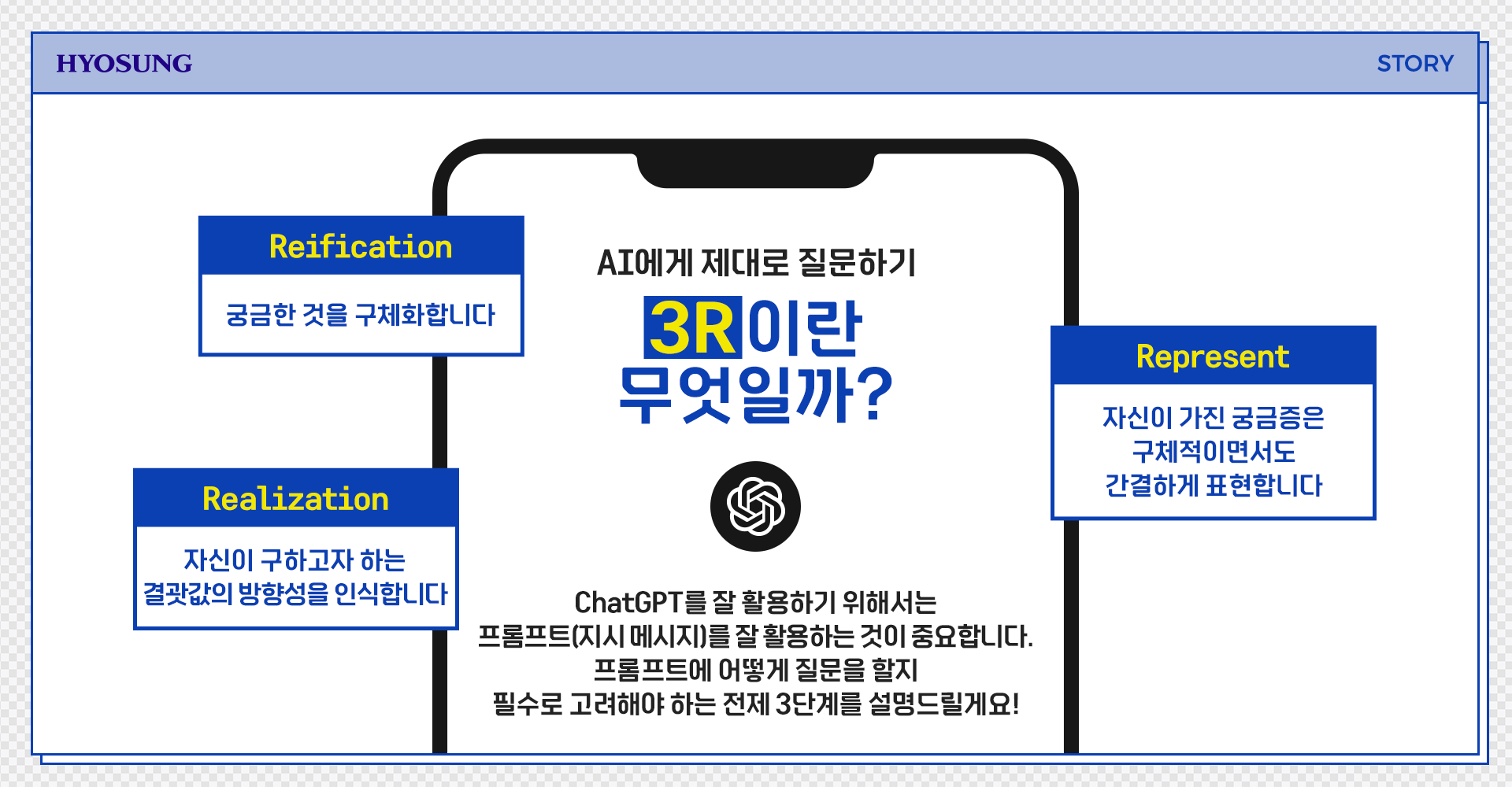 AI는 사람의 니즈를 알아듣고 그에 맞는 답을 내주기 때문에 여러분의 니즈를 정확하게 형상화하고 인지하는 것, 그것을 잘 표현하는 것인데요. 그것이 바로 ‘질문’, ChatGPT 프롬프트입니다. 프롬프트를 잘 활용하는 효과적인 방법 3가지를 알려드릴게요!