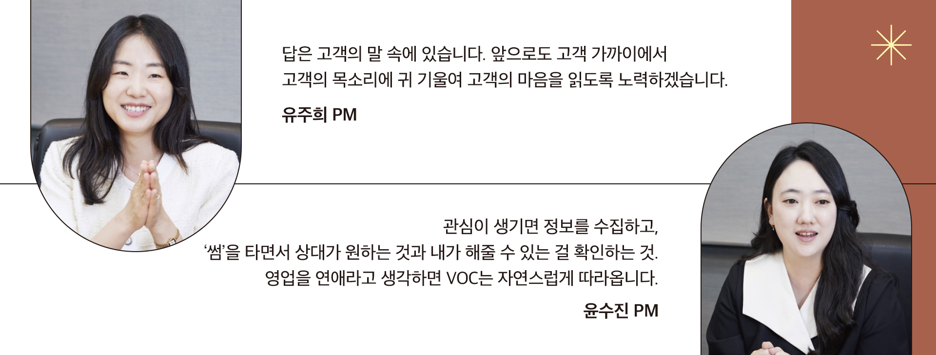 효성중공업 유럽영업팀은 전력PU의 초고압 변압기와 차단기를 유럽 내 고객에게 수주·판매하는데요. 유럽은 전 세계 전력 시장의 트렌드를 주도하는 곳으로, 강력한 에너지 정책과 공격적인 인프라 투자, 스마트 그리드와 신재생에너지 전환 정책 등이 활발하게 이뤄지고 있습니다. “지난 8월 저희 팀은 글로벌 최대 전력망 박람회인 ‘CIGRE 파리 세션 2024’에 참석했습니다. 이 행사에서 세계 주요 고객과의 면담과 기술 포럼 등을 통해 VOC를 청취하고, 시장 분석과 고객 관계를 구축했습니다. 그 결과 노르웨이, 아이슬란드 송전청과 각각 납품 계약을 체결했습니다.” 노르웨이 송전청과의 변압기 납품 계약은 전력PU 창사 이래 최대 규모이고, 아이슬란드 송전청과의 계약은 유럽 내 차단기 단일 프로젝트로는 최대 규모인데요. 이 같은 괄목할 만한 성과의 비결은 바로 VOC입니다. 일례로 노르웨이 프로젝트를 주도한 유주희 PM은 고객이 창원공장을 방문했을 때 오가던 대화에 집중했습니다. “대화에 반복적으로 언급된 이슈가 ‘운송’과 ‘손실’이었어요. 노르웨이는 피오르 지형이라 해상으로 접근할 수 있는 배의 크기에 한계가 있고, 산지로 이뤄져 육로 운송도 쉽지 않습니다. 운송 사이즈와 무게의 제약은 곧 변압기에 대한 제약이었지요.” 이 정보를 토대로 엔지니어와 적극적으로 협력해 대응한 유럽영업팀은 최적화된 변압기 설계와 운송 방법을 고객에게 제시하면서 만족도와 신뢰도가 상승했습니다.