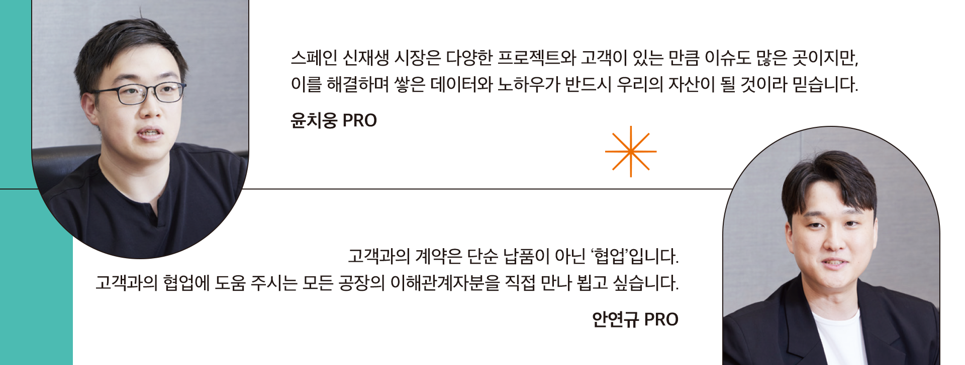 지난 2년 동안 유럽영업팀은 팀원을 9명에서 20명으로 늘렸습니다. 인공지능(AI) 시대의 데이터 센터 증가, 탄소 저감 정책에 따른 친환경 에너지로의 전환 등 유럽 시장의 수요가 지속적으로 확대될 것으로 전망했기 때문이죠. 팀은 영국, 북유럽, 유럽대륙·CIS, 남유럽까지 4개 파트로 나눠 체계적으로 운영하고 있습니다. 또한 스페인 법인과 영국 지사와의 밀착 협업을 통해 고객 관리 및 VOC 활동을 펼치고 있는데요. 최근 3년간 주요 북유럽 고객으로부터 엄청나게 수주한 변압기 및 차단기 프로젝트들의 수행과 북유럽 주요 고객 네트워크 강화, 신규 시장 진입 추진을 위해 2025년 상반기 내 북유럽 지사 설립도 적극적으로 검토 중입니다. “고객과의 신뢰를 공고히 하고자 담당 지역을 되도록 교체하지 않고 각자 지역의 전문가로 성장하고 있습니다. 담당 시장의 트렌드와 성공·실패 사례를 다 같이 공유하면서요. 10월부터는 매월 ‘Lesson & Learn’ 세션을 열어 성공 사례를 포상하고 실패 사례를 함께 공부할 예정입니다.” 물론 아직 해결해야 할 문제도 많습니다. 초고압 변압기는 수요에 비해 생산 슬롯이 부족해 납기를 맞추는 게 어렵고, 유럽 국가들이 친환경으로 전환했지만 효성의 친환경 차단기는 72.5㎸까지만 개발돼 적극적인 영업도 힘든 상황입니다. 이에 유럽영업팀은 창원공장과 네덜란드 R&D 센터와 한마음으로 움직이며 새로운 성과와 꾸준한 성장을 이뤄나갈 계획입니다.