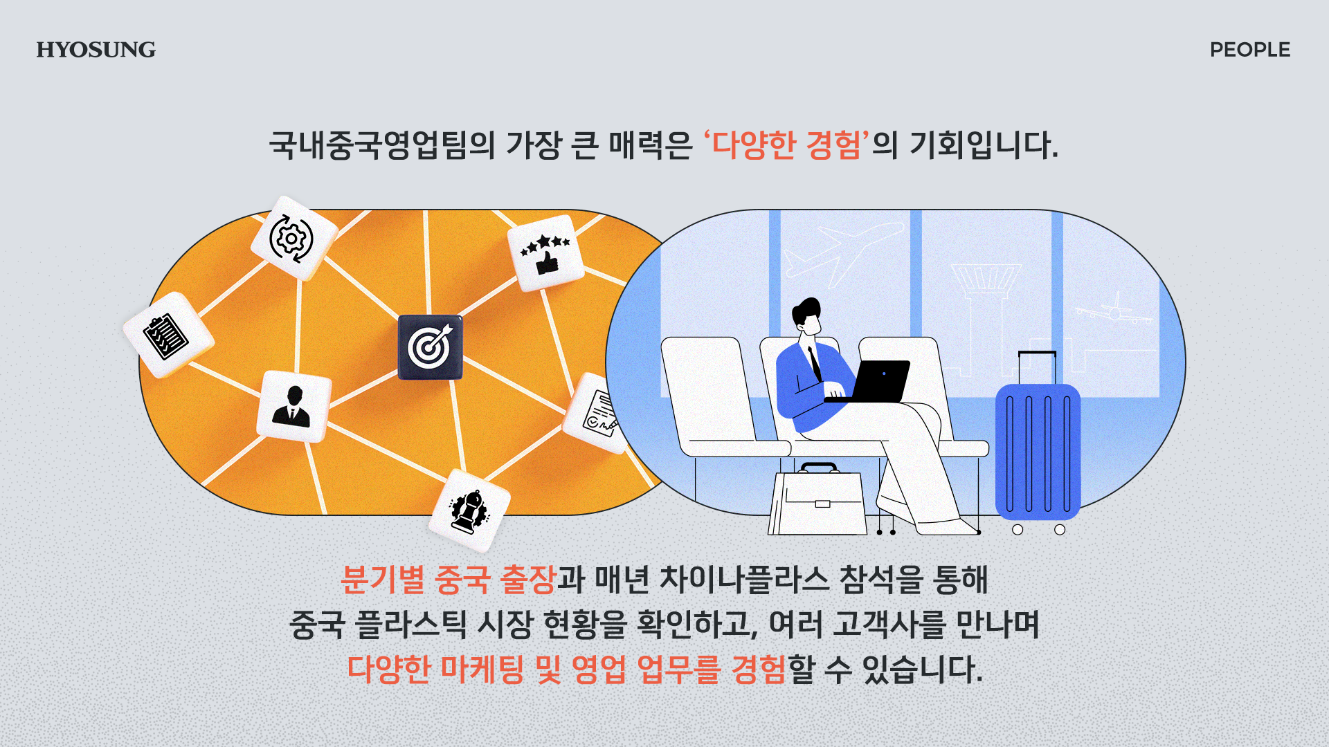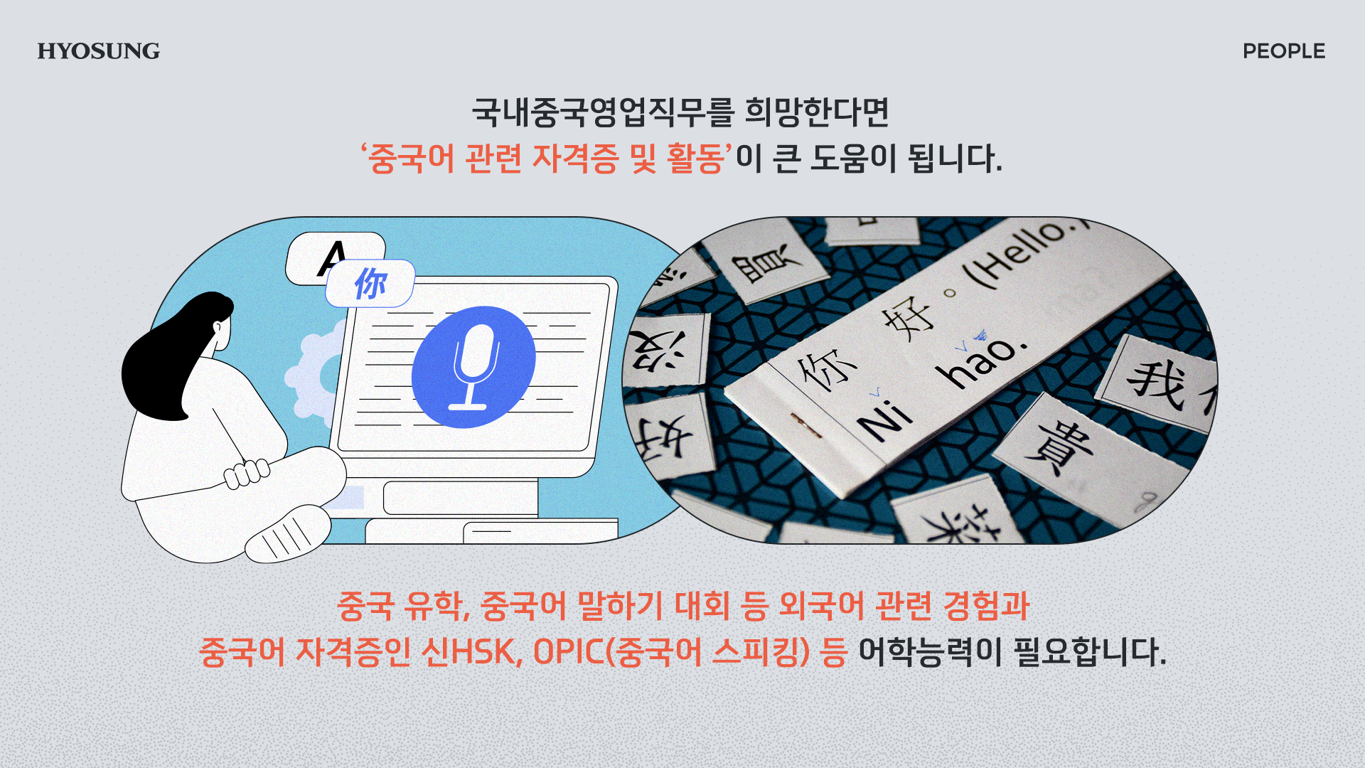 효성그룹 국내중국영업팀에 입사하려면 중국어..잘해야할까? 효성화학 POK사업단 국내중국영업팀의 현직자가 알려주는 모든것! 효성 피플, 시작합니다.