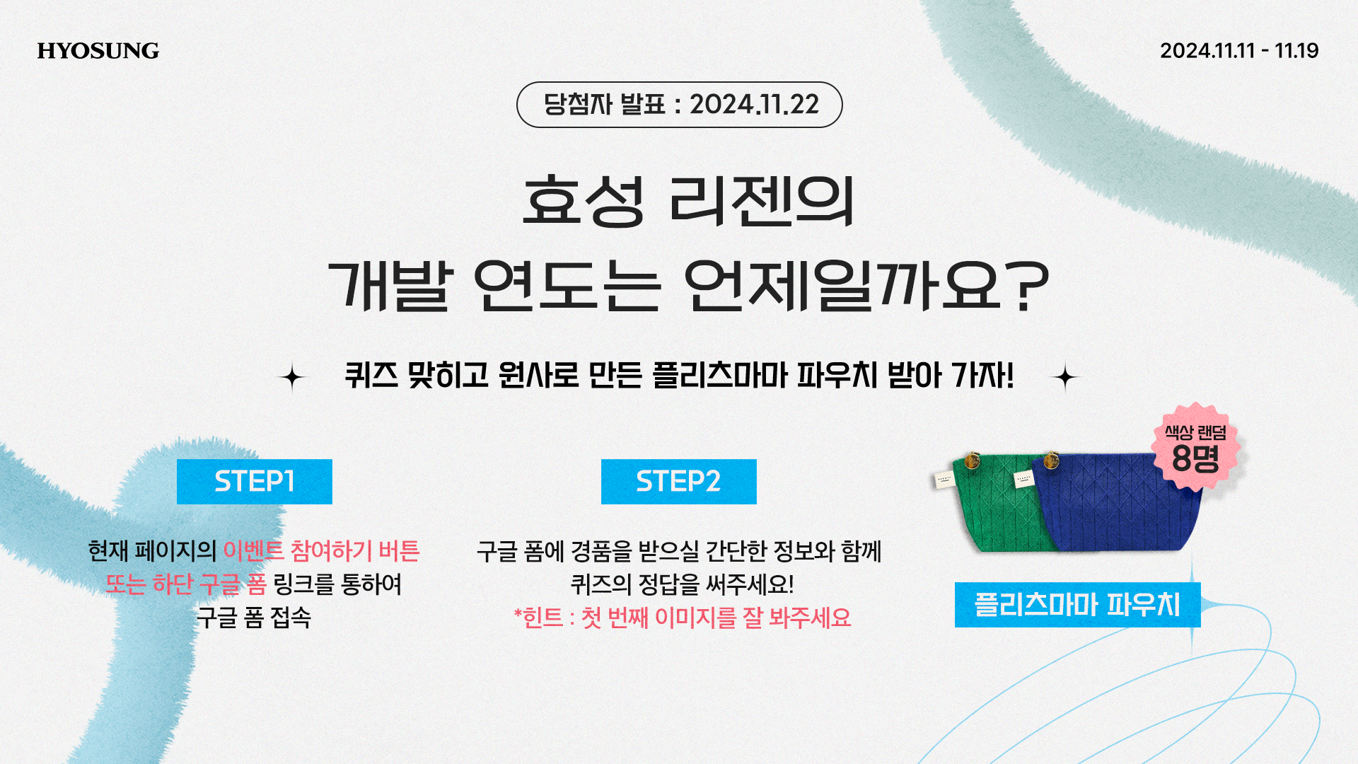 👀이번 이벤트는 효성프렌즈 4기 박채민, 진소이, 한예진 서포터즈와 함께 기획하였습니다. 많은 관심 부탁드려요👀