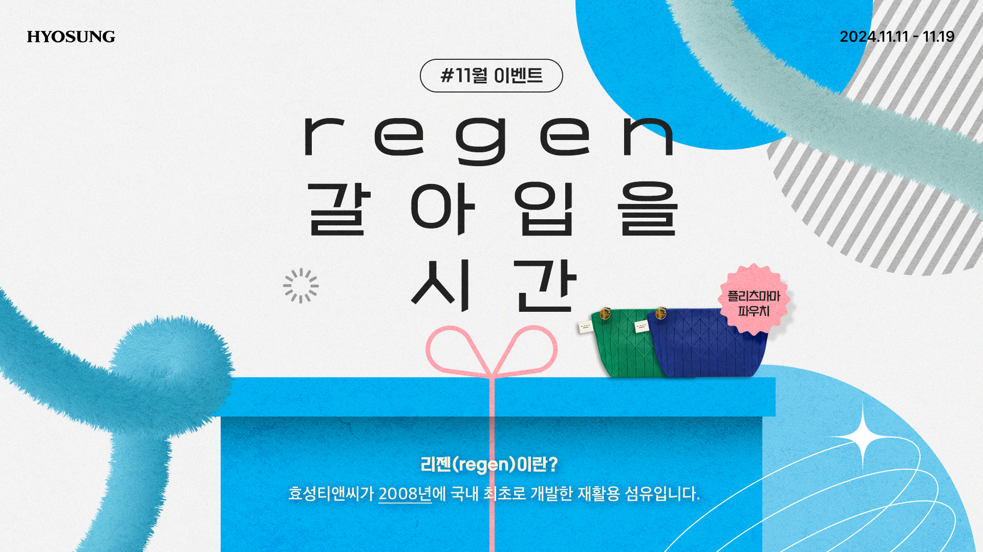 리사이클 섬유의 트렌드를 이끌어 가고 있는 효성의 '리젠'! 필(必)환경 시대에서 리젠, 갈아입을 시간 인 것 같습니다!