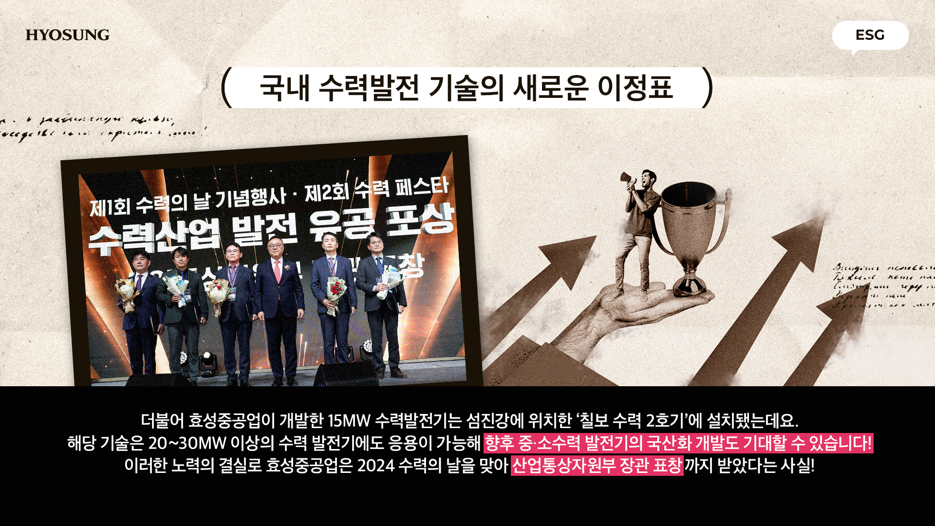 이러한 노력의 결실로 효성중공업은 2024 수력의 날을 맞아 산업통상자원부 장관 표창까지 받았다는 사실!