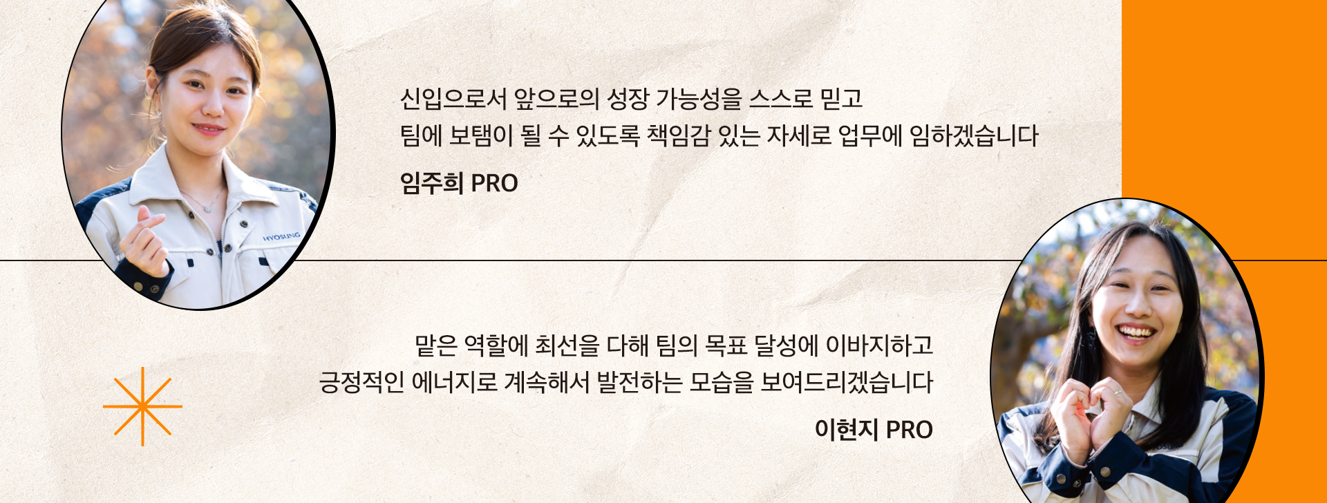 “맡은 역할에 최선을 다해 팀의 목표 달성에 이바지하고 긍정적인 에너지로 계속해서 발전하는 모습을 보여드리겠습니다.”