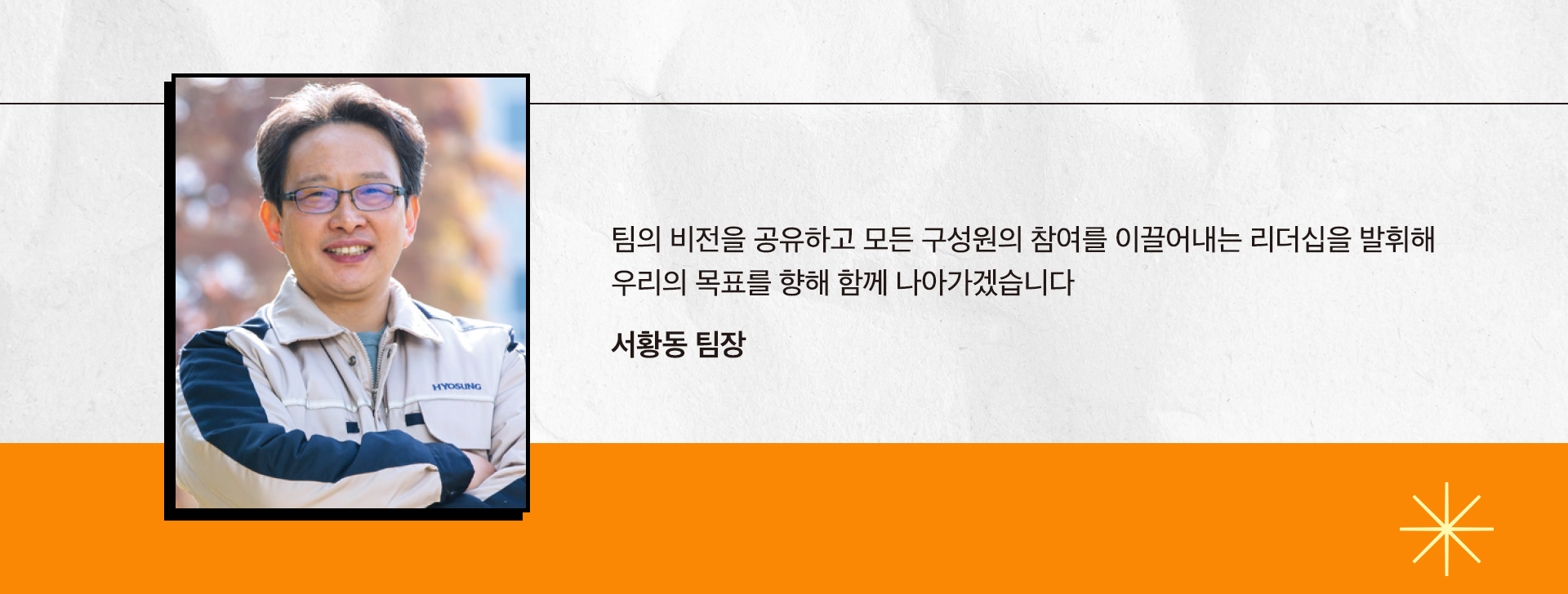 “팀의 비전을 공유하고 모든 구성원의 참여를 이끌어내는 리더십을 발휘해 우리의 목표를 향해 함께 나아가겠습니다.”