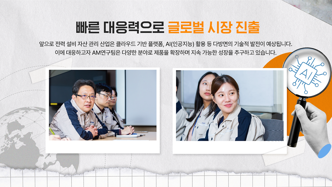 앞으로 전력 설비 자산 관리 산업은 클라우드 기반 플랫폼, AI(인공지능) 활용 등 다방면의 기술적 발전이 예상됩니다. 이에 대응하고자 AM연구팀은 다양한 분야로 제품을 확장하며 지속 가능한 성장을 추구하고 있는데요.