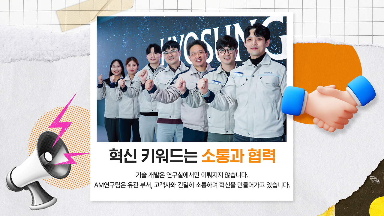AM연구팀은 유관 부서, 고객사와 긴밀히 소통하며 혁신을 만들어가고 있는데요. 특히 AM연구팀은 디지털시스템사업팀과의 협업을 통해 연구와 사업화의 경계를 허물고 있습니다. 사업부와 매월 정례 회의 및 워크숍을 진행해 사업 진행 현황과 기술 동향을 공유하고, 서로의 요구 사항을 빠르게 파악하고 있는 것인데요.