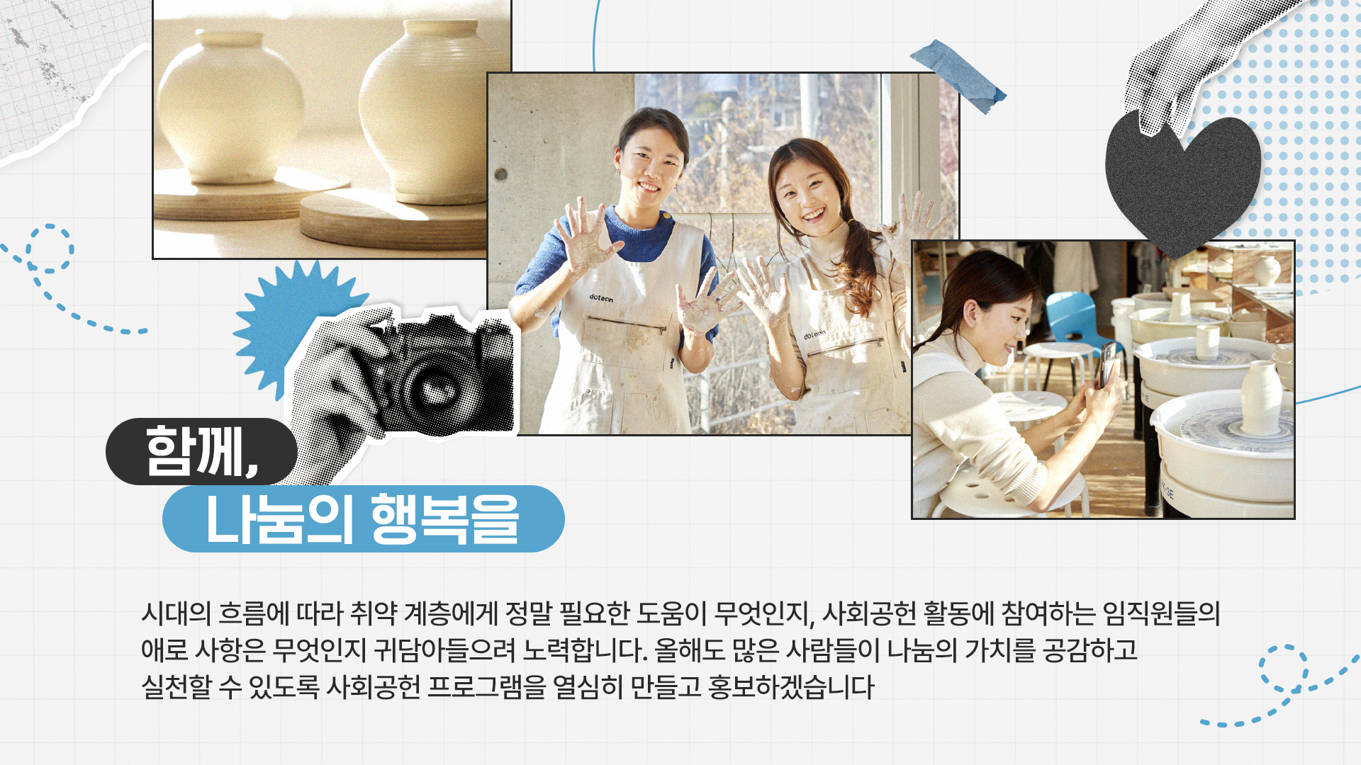 올해도 많은 사람들이 나눔의 가치를 공감하고 실천할 수 있도록 사회공헌 프로그램을 열심히 만들고 홍보하겠습니다.”