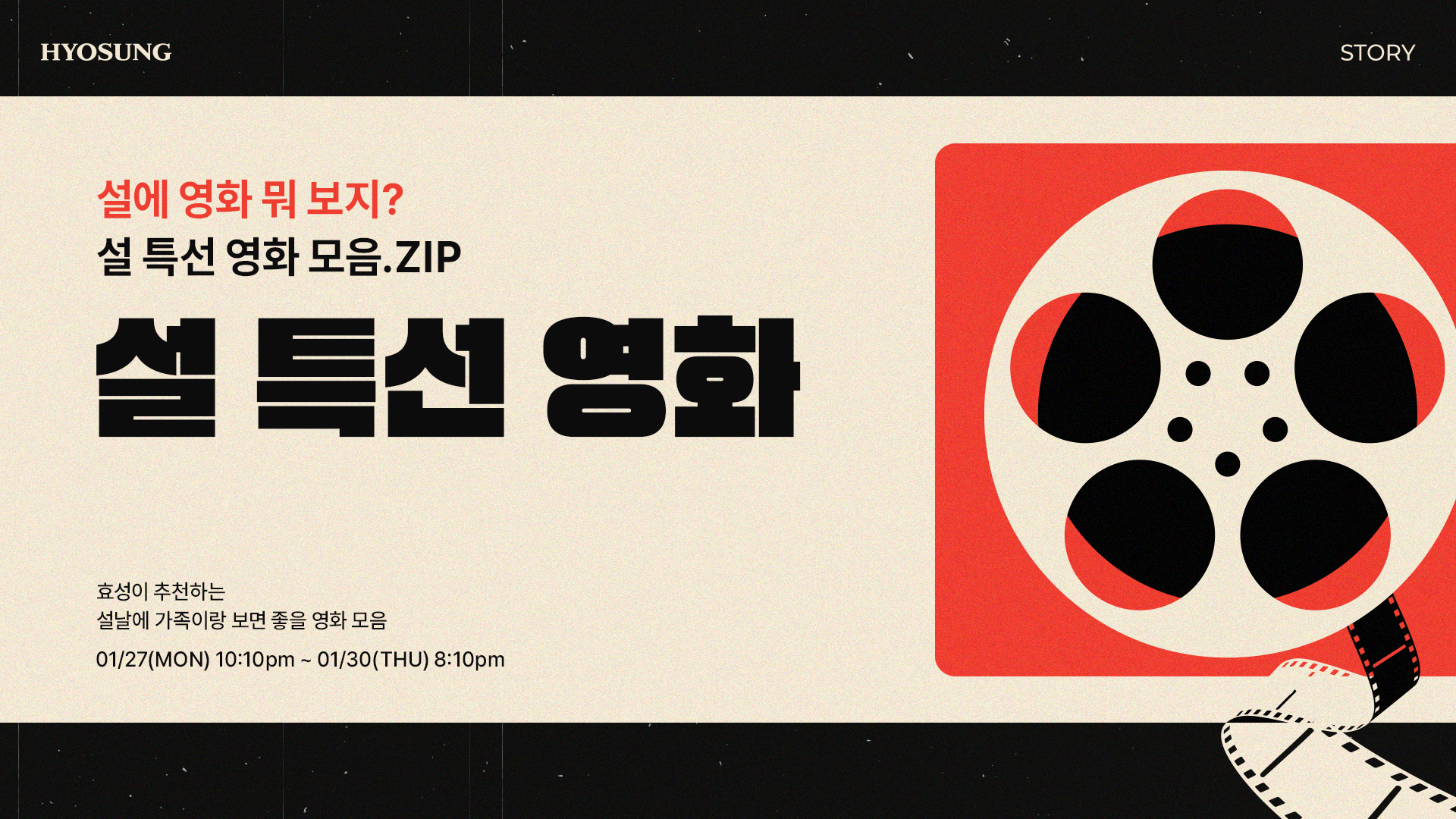 🎬 이번 설엔 가족, 친구와 함께 따뜻한 영화 한 편으로 특별한 시간을 만들어보세요! 효성이 제작 지원한 배리어프리영화와 설 특선 영화로 더욱 풍성하고 감동적인 연휴가 되길 바랍니다.