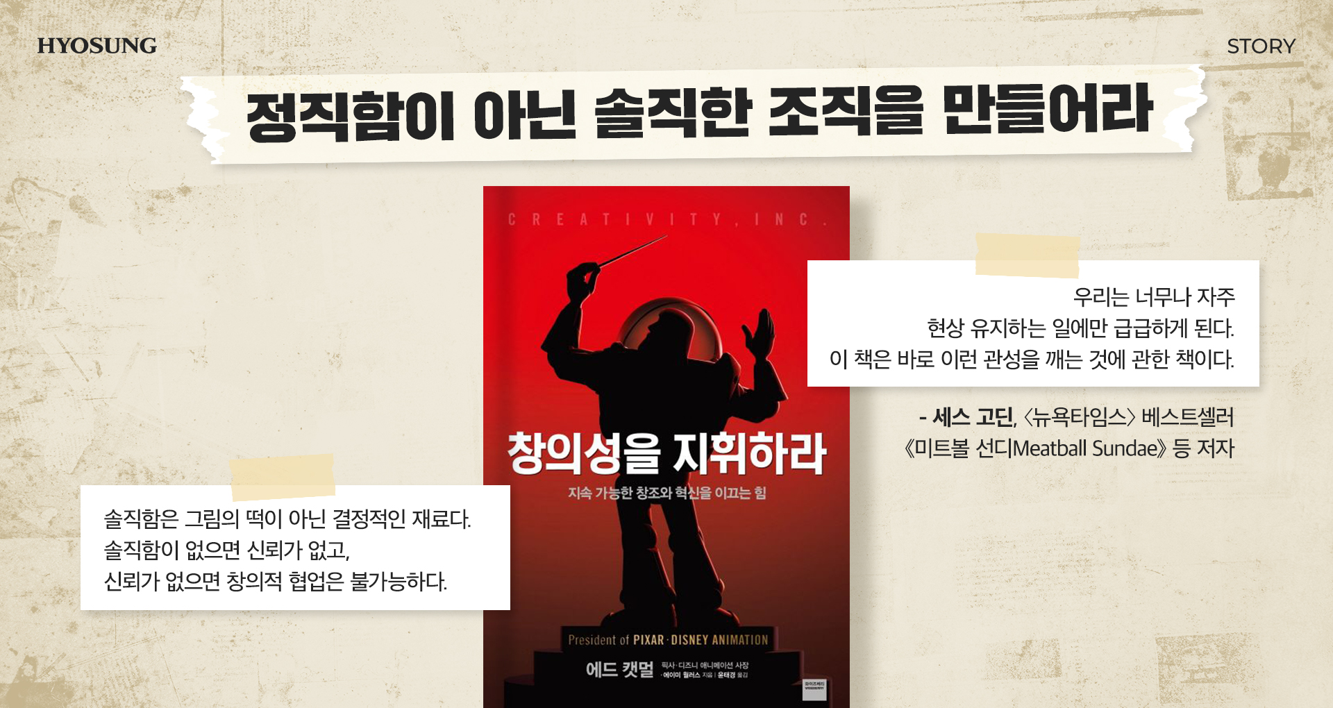 솔직함은 그림의 떡이 아닌 결정적인 재료다. 솔직함이 없으면 신뢰가 없고, 신뢰가 없으면 창의적 협업은 불가능하다.