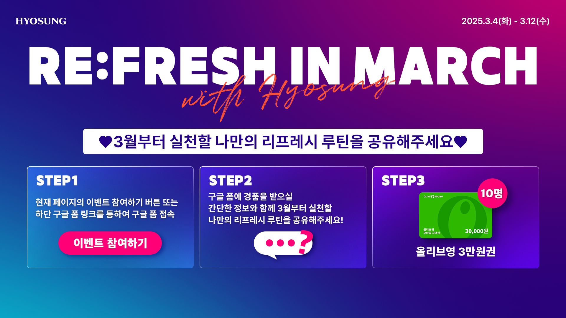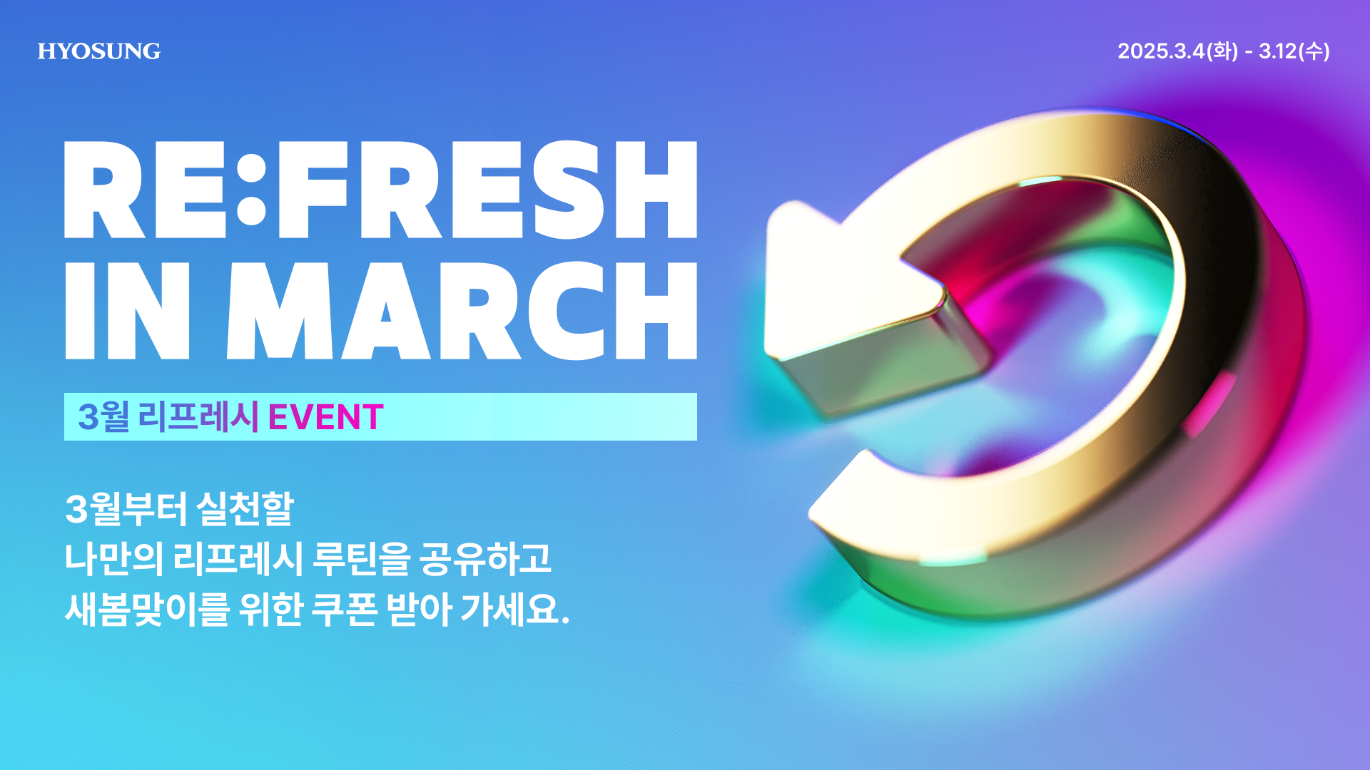 | [이벤트 당첨자] 3월 REFRESH EVENT, 3월부터 실천할 나만의 리프레시 루틴은? (0) | 2025.03.17 |