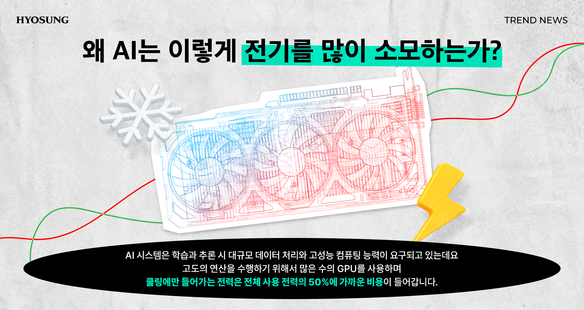 AI 시스템은 학습과 추론 시 대규모 데이터 처리와 고성능 컴퓨팅 능력이 요구되고 있는데요. 고도의 연산을 수행하기 위해서 많은 수의 GPU를 사용하며 쿨링에만 들어가는 전력은 전체 사용 전력의 50%에 가까운 비용이 들어갑니다.