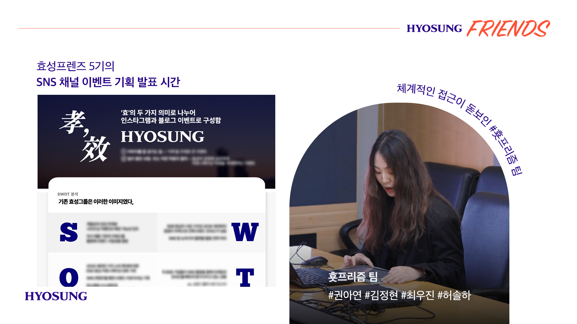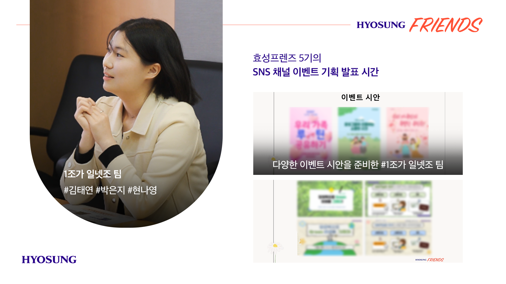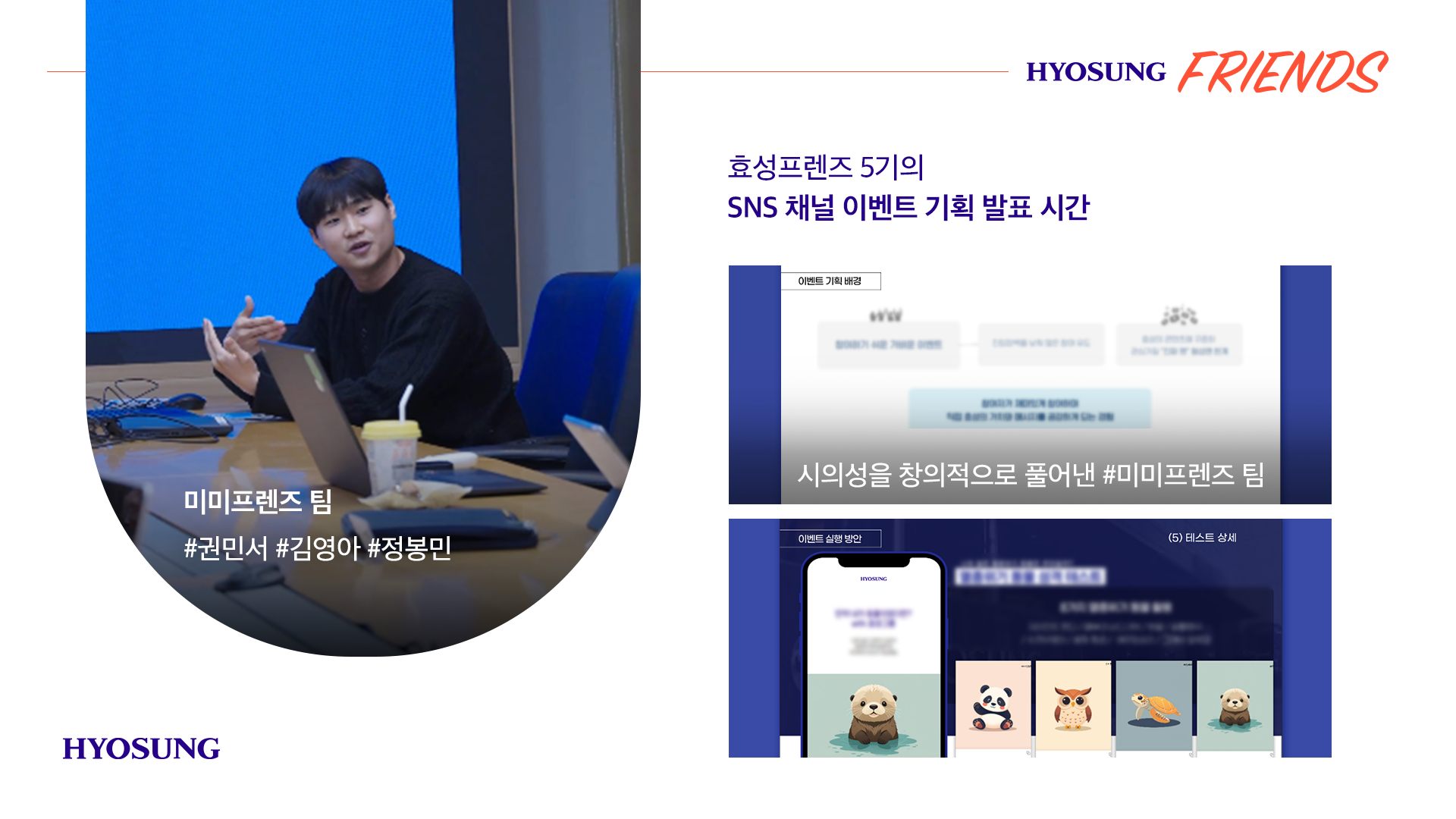 특강이 마무리된 후 효성프렌즈 5기가 열심히 준비하고 기획한 'SNS 채널 이벤트 기획’을 발표하는 시간을 가졌는데요.