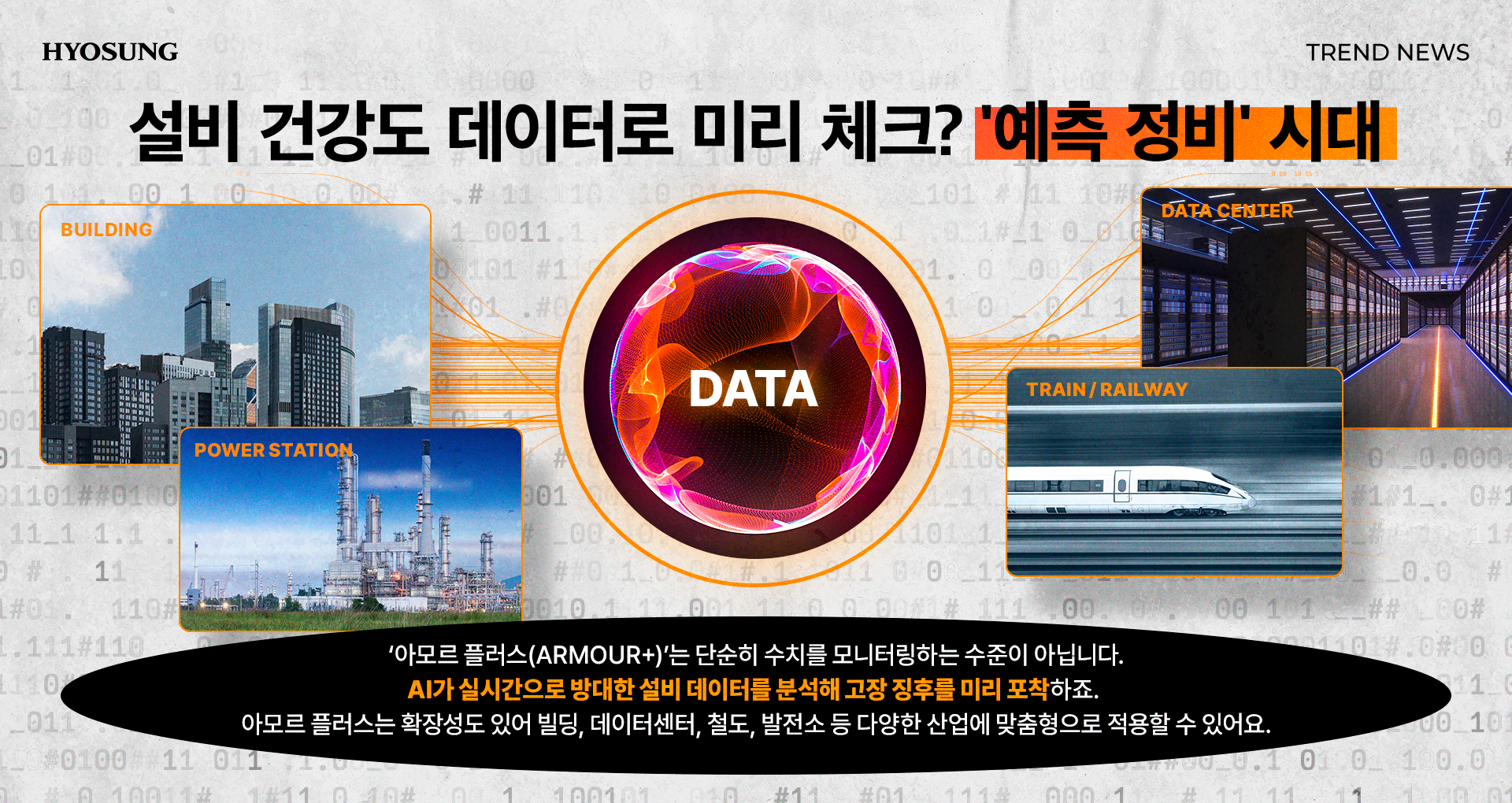 ‘아모르 플러스(ARMOUR+)’는 단순히 수치를 모니터링하는 수준이 아닙니다. AI가 실시간으로 방대한 설비 데이터를 분석해 고장 징후를 미리 포착하죠. 아모르 플러스는 확장성도 있어 빌딩, 데이터센터, 철도, 발전소 등 다양한 산업에 맞춤형으로 적용할 수 있어요.