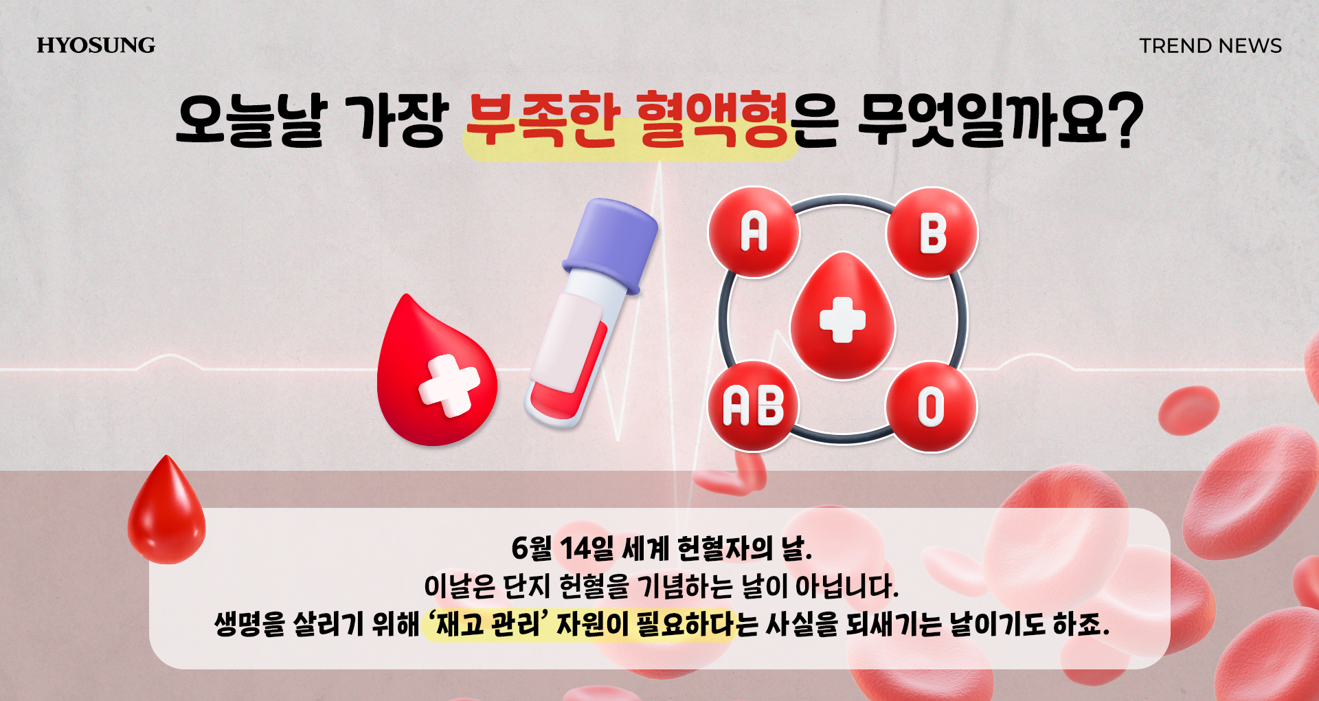 아주 소중한 실천입니다. 헌혈이 단지 '좋은 일'에 그치지 않고, 왜 지속가능한 사회를 위해 헌혈이 필요한지 효성의 이야기를 통해 전해드리겠습니다:)