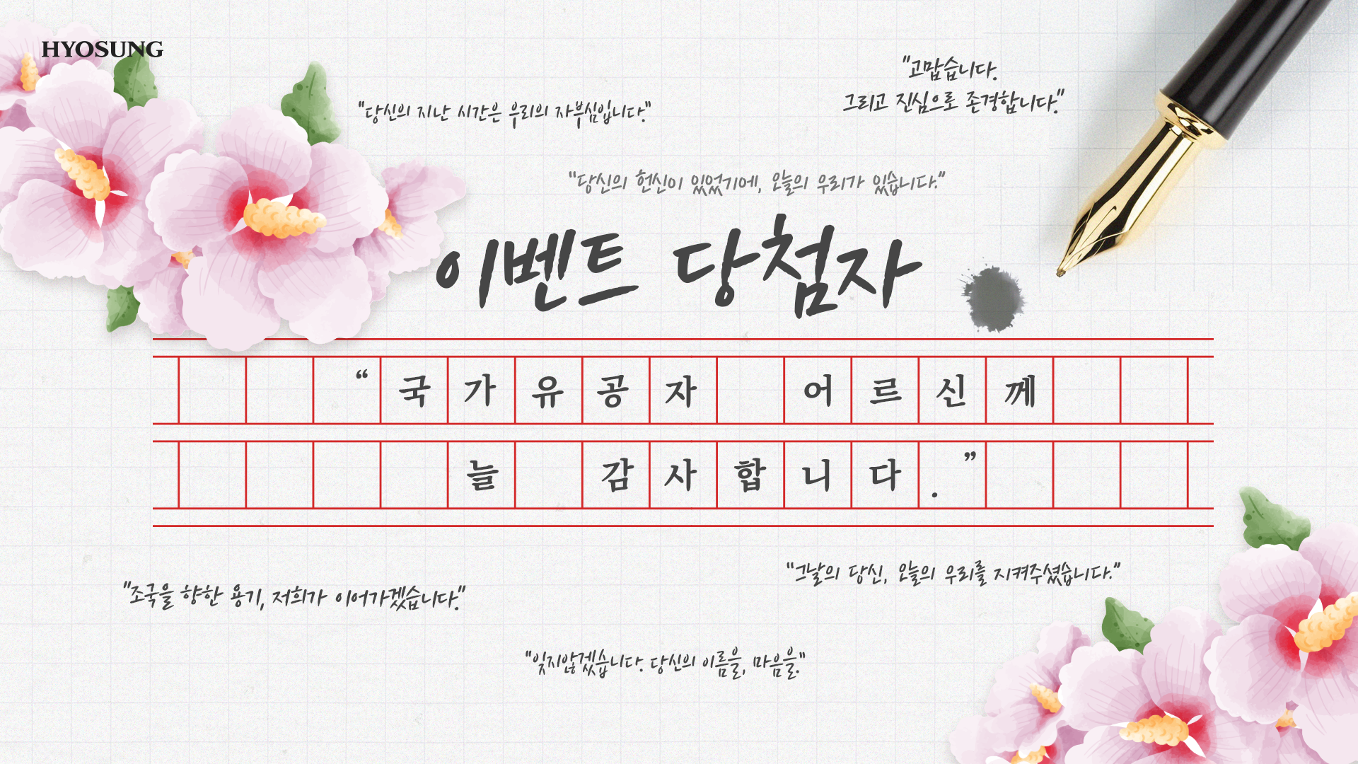 <효성이 후원하는 서울남부보훈지청 국가유공자 어르신들께 응원과 감사의 메시지를 남겨보아요!> 이벤트 당첨자 발표