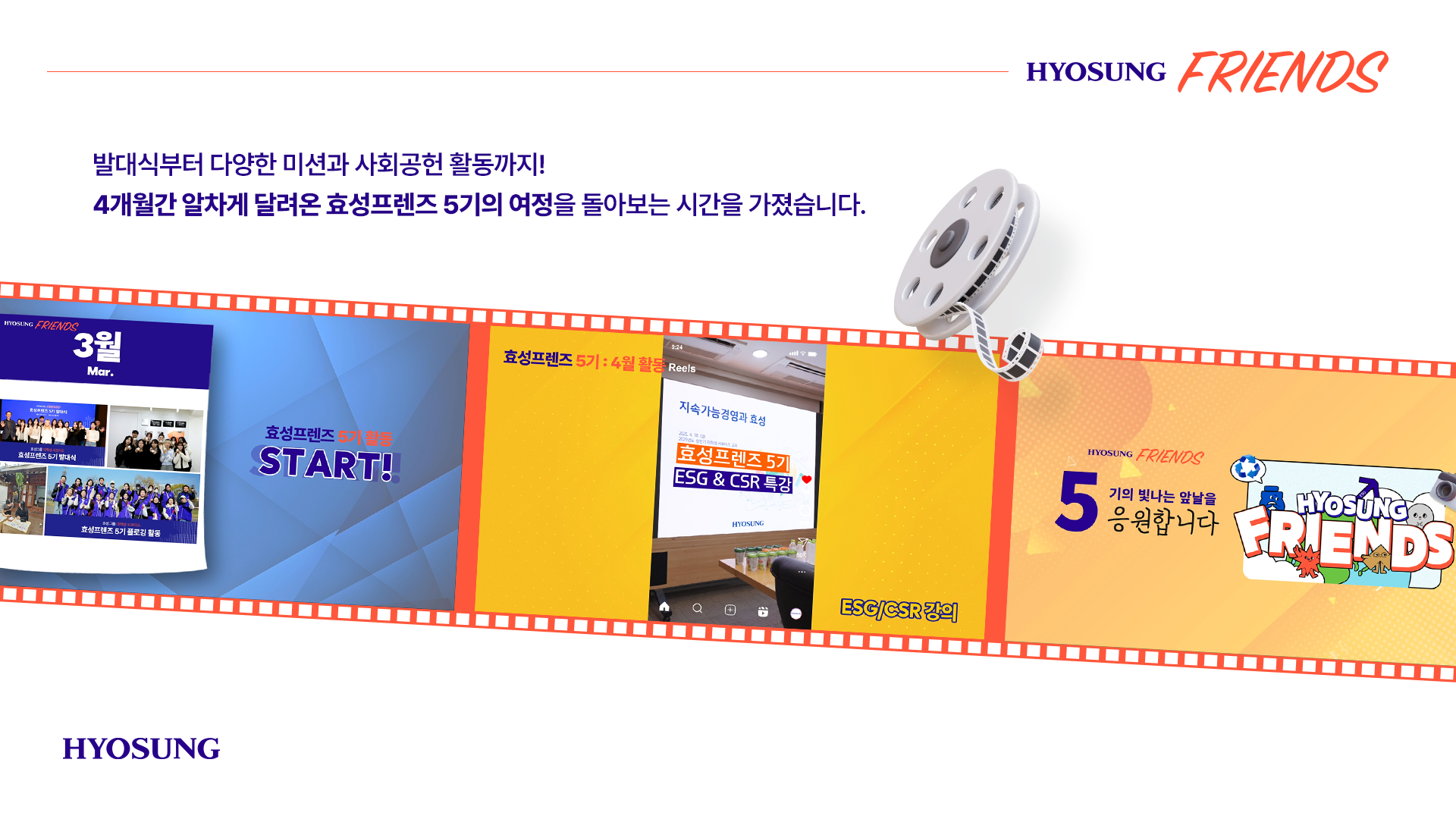 효성프렌즈 5기는 시간이 지날수록 눈에 띄게 발전하는 콘텐츠 기획력과 표현력을 선보였습니다.
