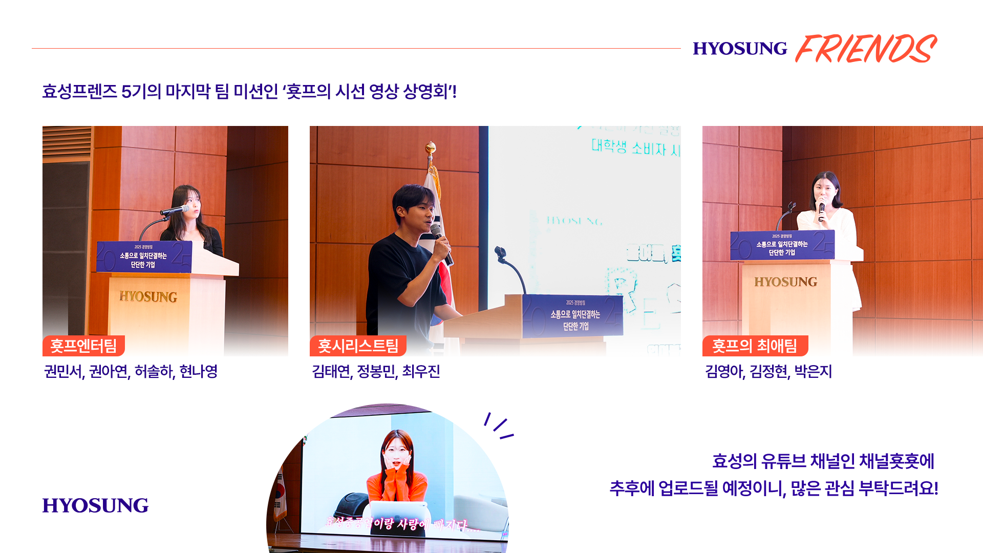 해당 영상들은 추후에 효성의 유튜브 채널인 채널횻횻에 업로드될 예정이니, 많은 관심 부탁드려요!