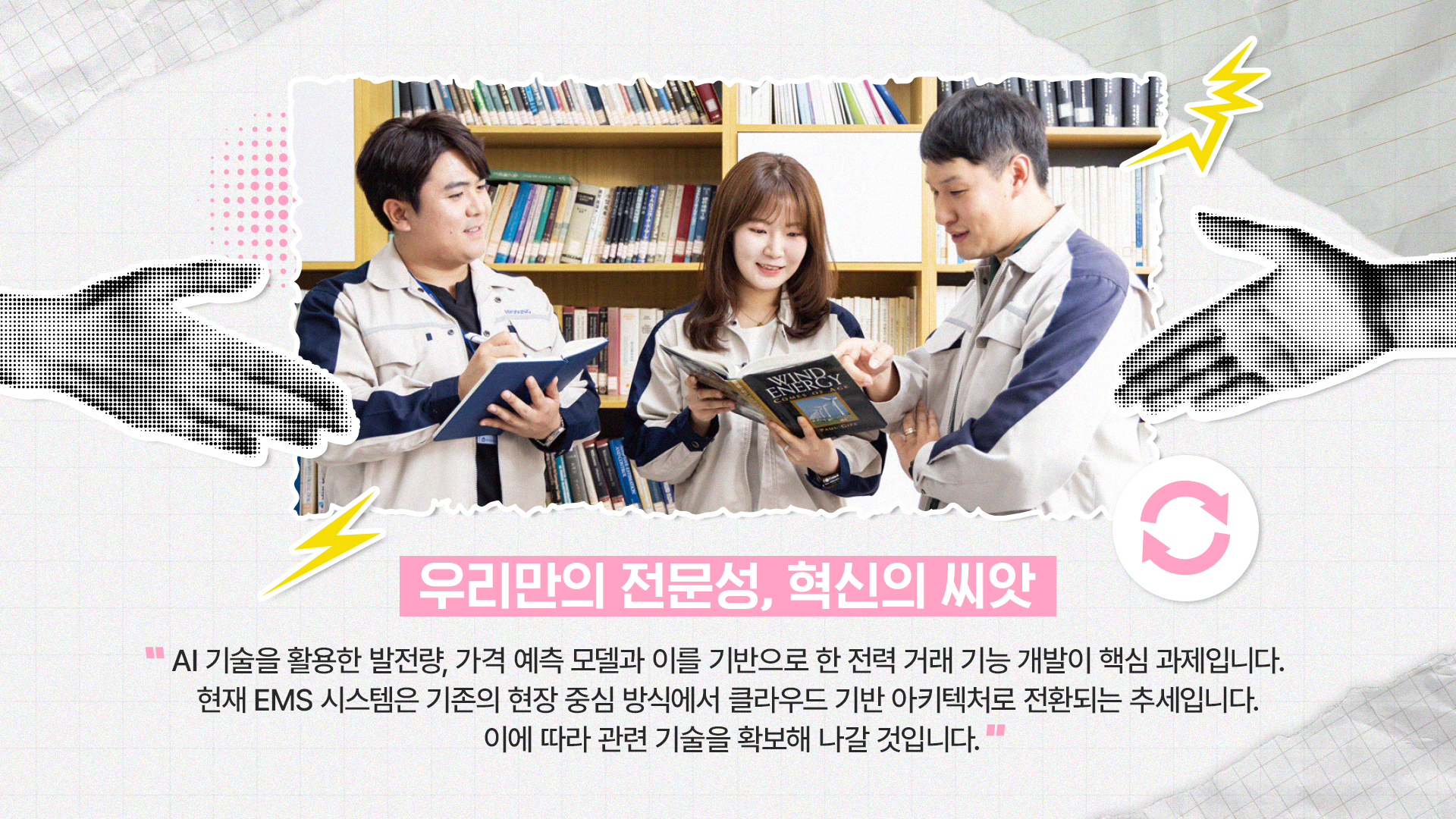 전 세계 전력 시장은 AI 산업, 신재생 에너지 개발 등으로 인한 전력 수요 증가로 급격한 변화를 맞이하고 있습니다. 전력S/W 연구팀은 이러한 변화의 흐름에 발맞춰나아가는 데 여념이 없죠.