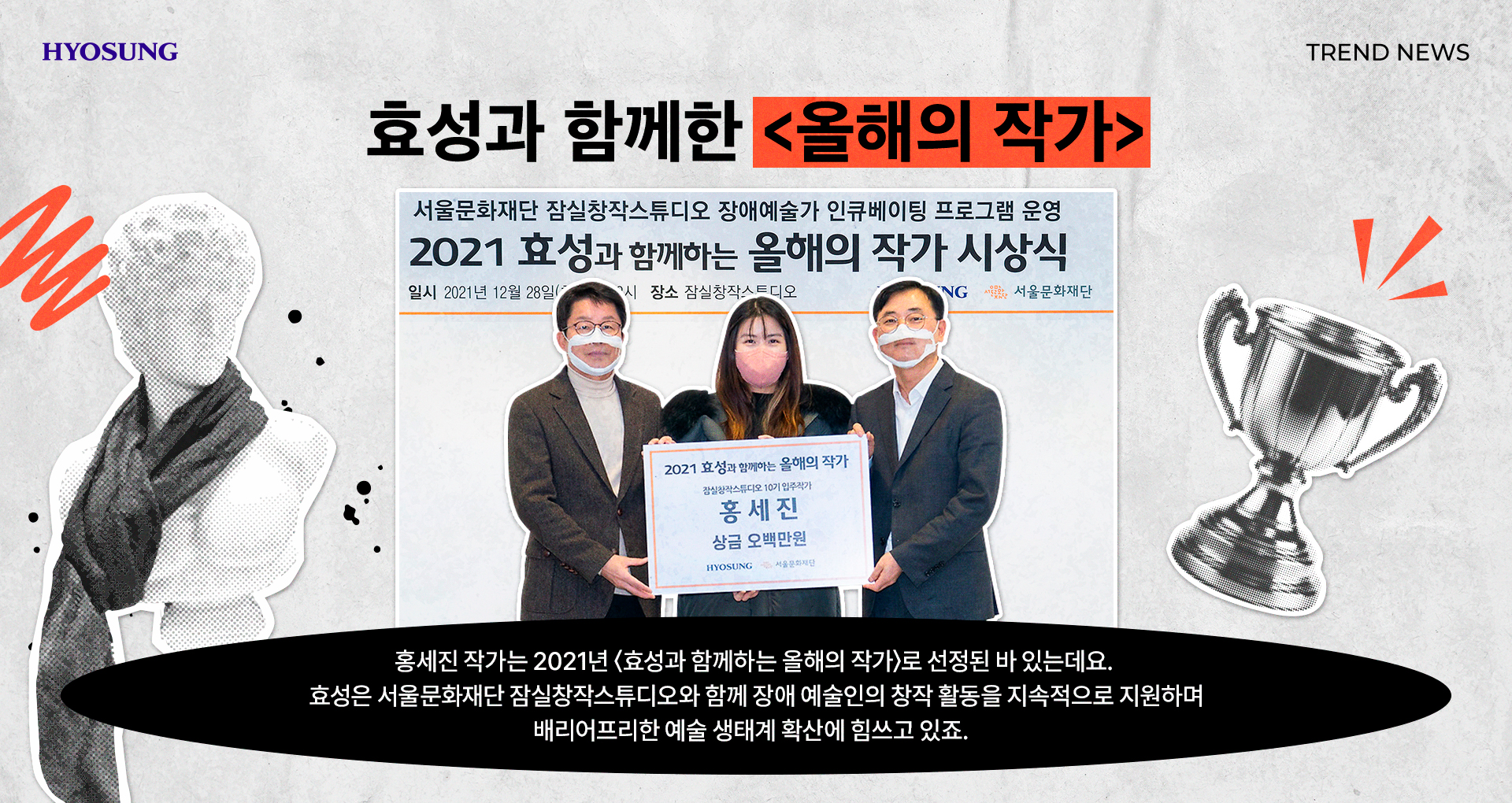 홍세진 작가는 2021년 〈효성과 함께하는 올해의 작가〉로 선정된 바 있는데요.