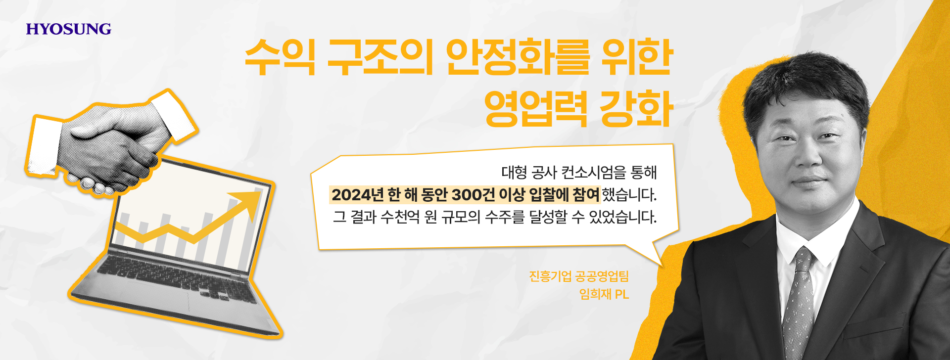 “대형 공사 컨소시엄을 통해 2024년 한 해 동안 300건 이상 입찰에 참여했습니다. 그 결과 수천억 원 규모의 수주를 달성할 수 있었습니다.”