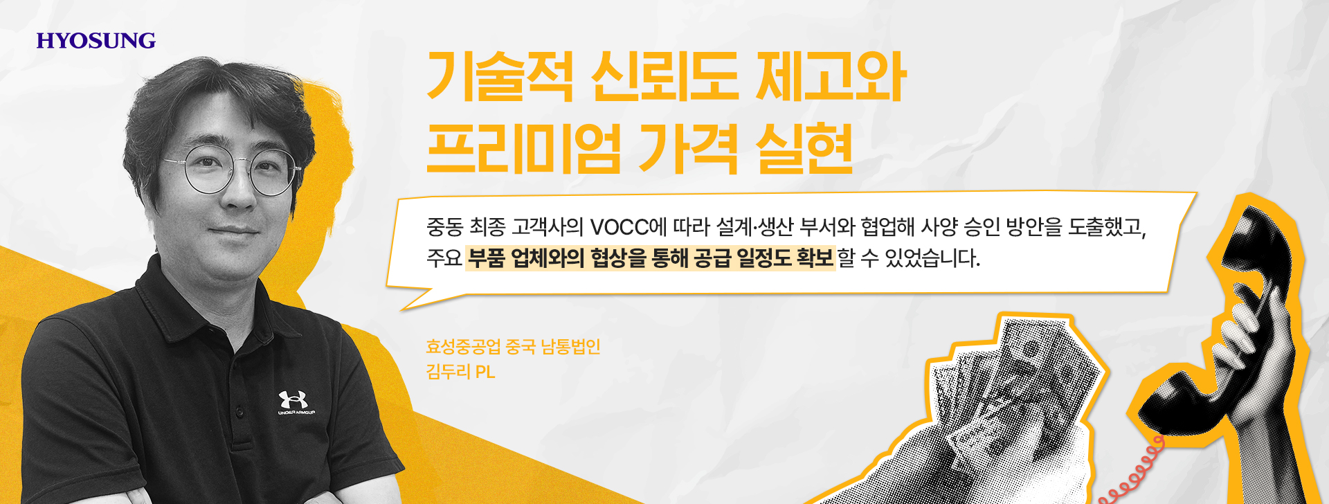 “중동 최종 고객사의 VOCC에 따라 설계·생산 부서와 협업해 사양 승인 방안을 도출했고, 주요 부품 업체와의 협상을 통해 공급 일정도 확보할 수 있었습니다.”