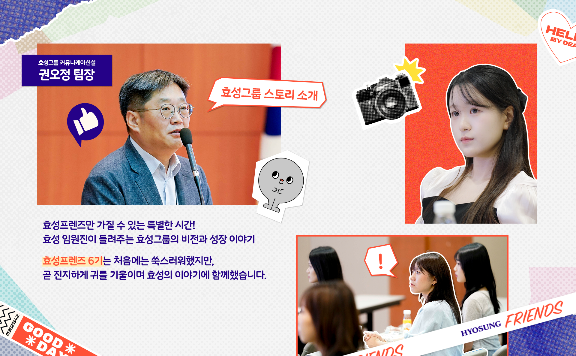 앞으로 효성프렌즈 6기는 효성그룹의 다양한 이야기와 활동을 자신만의 시선으로 풀어내며, 직접 콘텐츠를 기획하고 제작하게 됩니다.