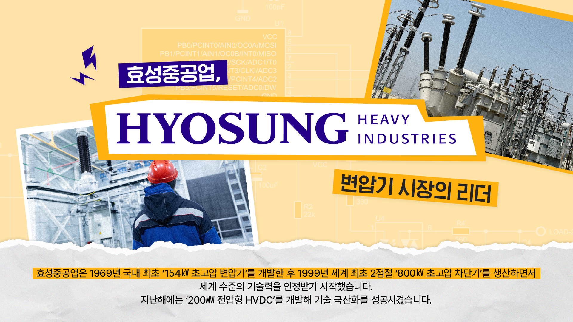 효성중공업은 1969년 국내 최초 ‘154㎸ 초고압 변압기’를 개발한 후 1999년 세계 최초 2점절 ‘800㎸ 초고압 차단기’를 생산하면서 세계 수준의 기술력을 인정받기 시작했습니다. 이후 AI, DX 등 첨단 기술이 집약된 변전소 자산 관리 솔루션 ‘아모르’를 개발했고, 디지털 변전소 구축에 필요한 ‘저전력 변성기(LPIT)’와 ‘지능형 정보 취합 장치(MU)’를 상용화했습니다. 이 모든 게 국내 최초라 더욱 의미 있습니다. 지난해에는 ‘200㎿ 전압형 HVDC’를 개발해 기술 국산화를 성공시켰습니다.