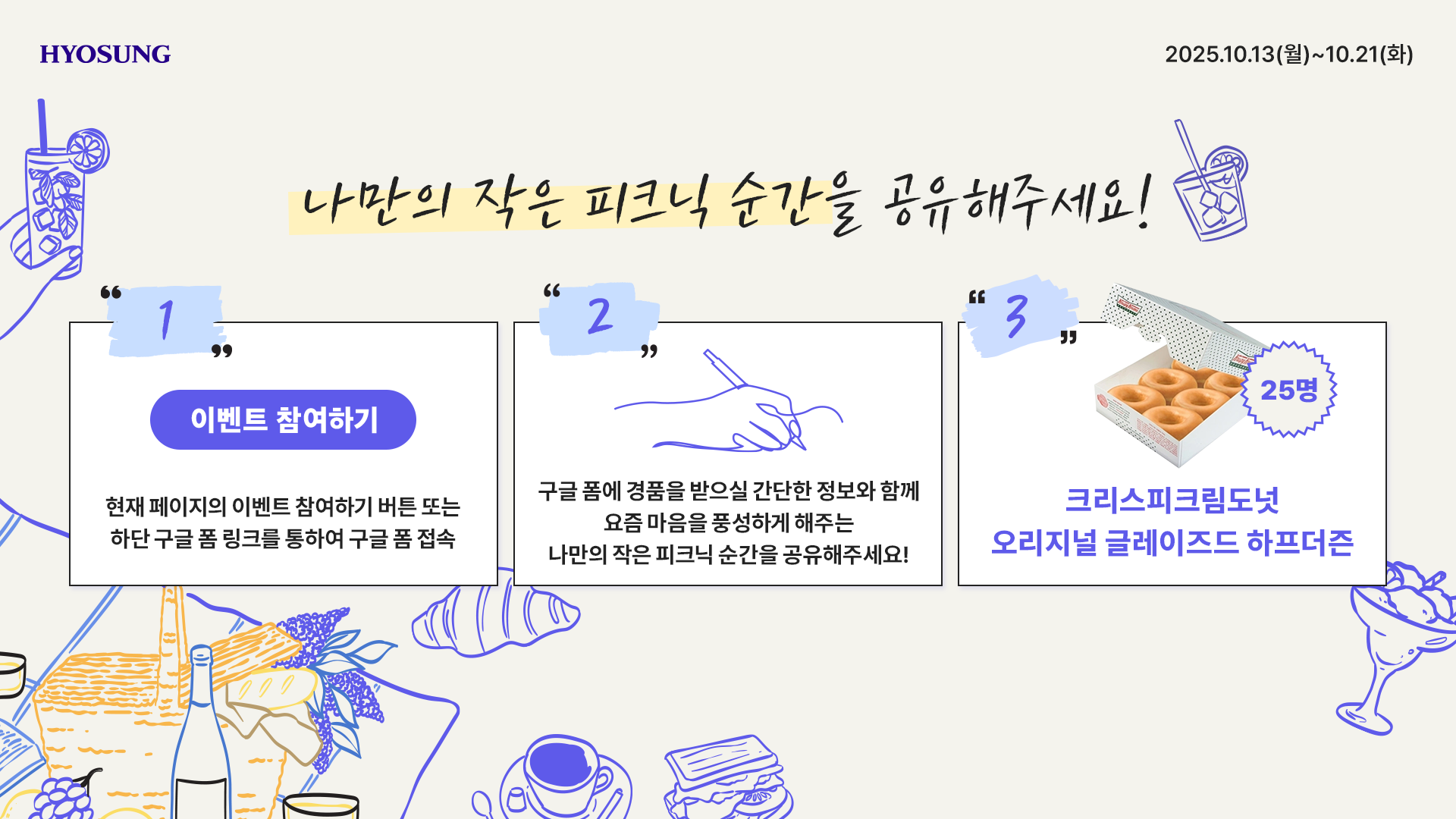 이번 이벤트에 참여하시면, 가을의 여유를 달콤하게 채워줄 도넛을 만나실 수 있어요!