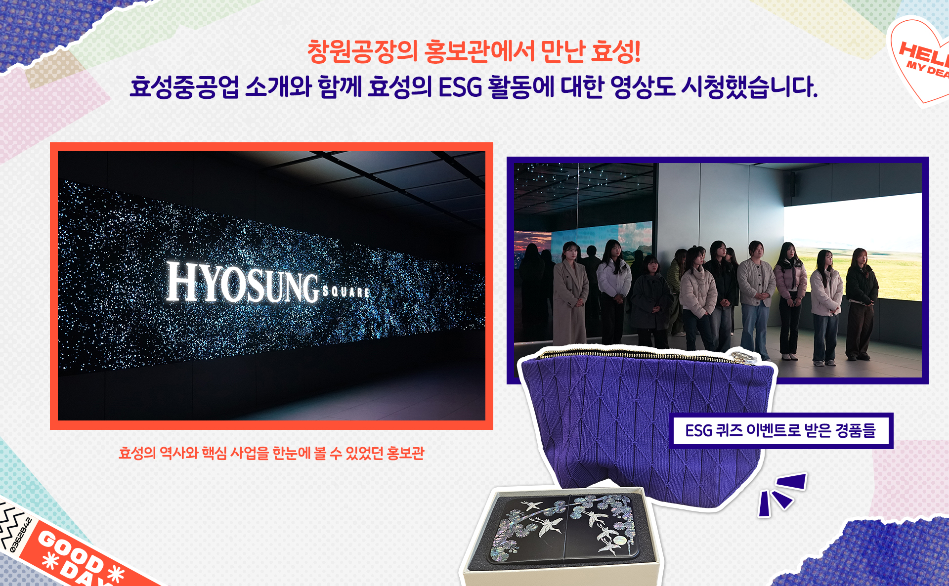 이곳에서는 효성의 연혁과 주요 사업, ESG 활동 등을 한눈에 볼 수 있는 소개가 진행되었어요.