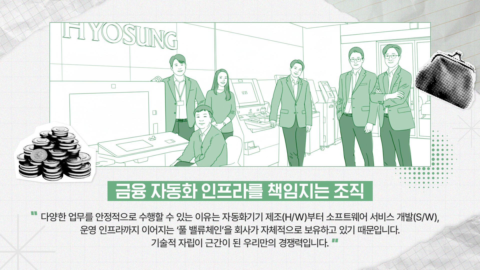 “다양한 업무를 안정적으로 수행할 수 있는 이유는 자동화기기 제조(H/W)부터 소프트웨어 서비스 개발(S/W), 운영 인프라까지 이어지는 ‘풀 밸류체인’을 회사가 자체적으로 보유하고 있기 때문입니다. 기술적 자립이 근간이 된 우리만의 경쟁력입니다."