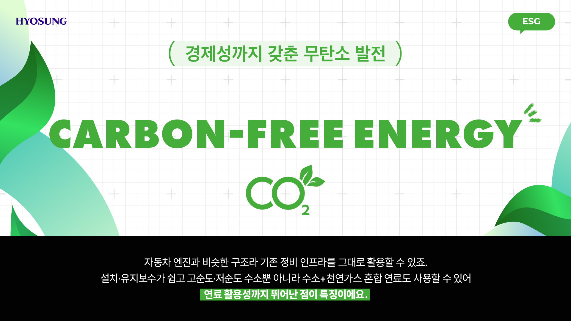 게다가 이 엔진은 탄소 배출 없이 전기를 만듭니다. 효성중공업이 만든 무탄소 수소엔진발전기 이야기입니다.
