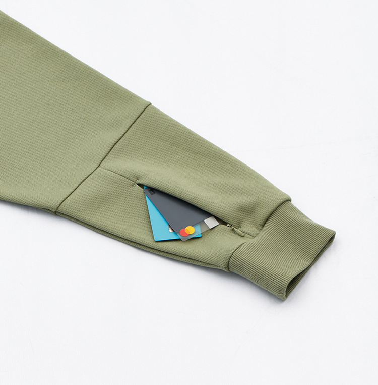 ➊ 주머니가 3개(슬리브 우븐 패치•히든 포켓, 보디 히든 포켓)