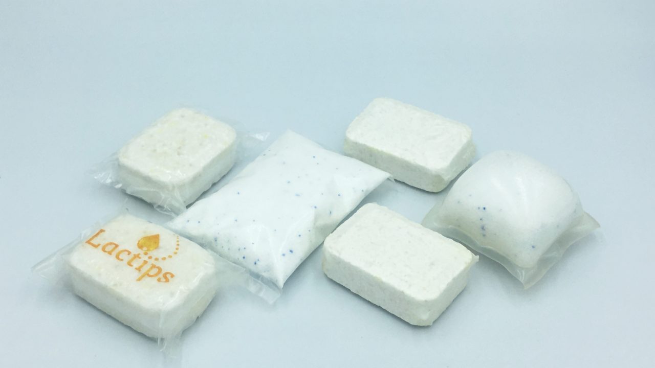 프랑스의 스타트업 ‘락팁스(Lactips)’는 세계 최초로 유통기한이 지나 버려지는 우유에서 단백질 성분인 카제인을 추출해 이것으로 열가소성 펠릿(thermoplastic pellets)을 만들었습니다. 고형 원료인 펠릿을 활용하면 플라스틱과 비닐 포장재를 만들 수 있고, 이렇게 만들어진 포장재는 미생물에 의해 100% 자연분해가 될 뿐 아니라, 물에 녹기도 하고, 심지어 사람이 먹을 수도 있을 만큼 안전한 소재라고 해요. 게다가 버려지는 우유를 활용한다는 점에서도 자원을 아낄 수 있는 착한 소재네요.
