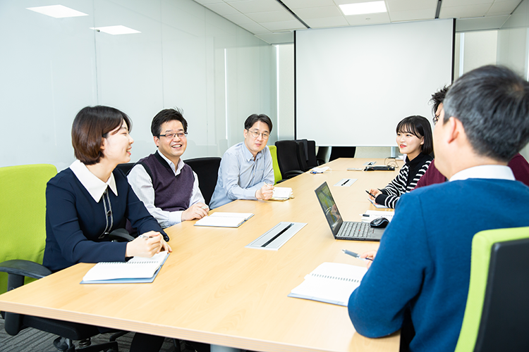 Optical Film PU 영업팀은 ‘효성’이란 이름으로 좋은 품질의 제품을 공급한다는 책임감을 가지고 고객과의 신뢰 관계를 다져나가고 있습니다. 그뿐만 아니라 VOC에 귀를 기울이고 문제가 발견되는 즉시 관련 부서와 적극적으로 공유하는 등 고객이 더욱 믿고 맡길 수 있는 환경을 만들죠. 이를 위해서는 유관 부서와의 커뮤니케이션이 중요할 수밖에 없습니다. 지인구 팀장은 “동료애를 바탕으로 허심탄회하게 대화하는 게 가장 효과적인 커뮤니케이션”이라고 강조했습니다.