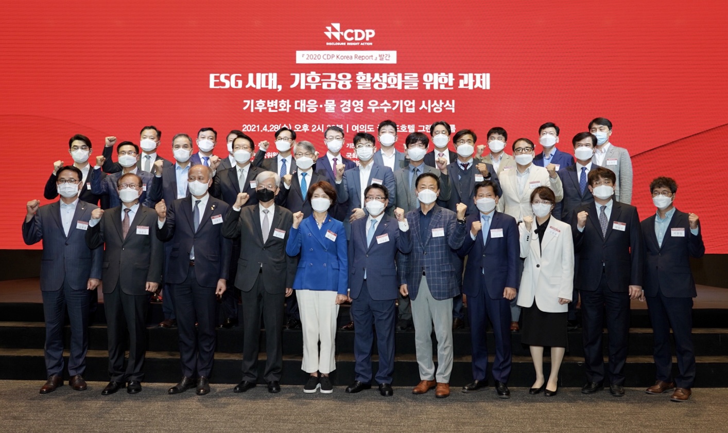 CDP 평가는 다우존스 지속가능성지수, FTSE4GOOD(사회책임투자지수) 등과 함께 기업 지속가능 경영의 한 분야인 기후변화 대응을 평가하는 가장 신뢰받는 지표입니다. 2020년 CDP 평가에는 전 세계 9,600개의 기업이 환경경영 평가에 참여했죠. CDP 한국위원회는 2020년 CDP 평가 결과 국내 200개 기업 중 18개 우수기업을 ‘탄소경영 섹터 아너스’로 선정해 시상을 진행했습니다.