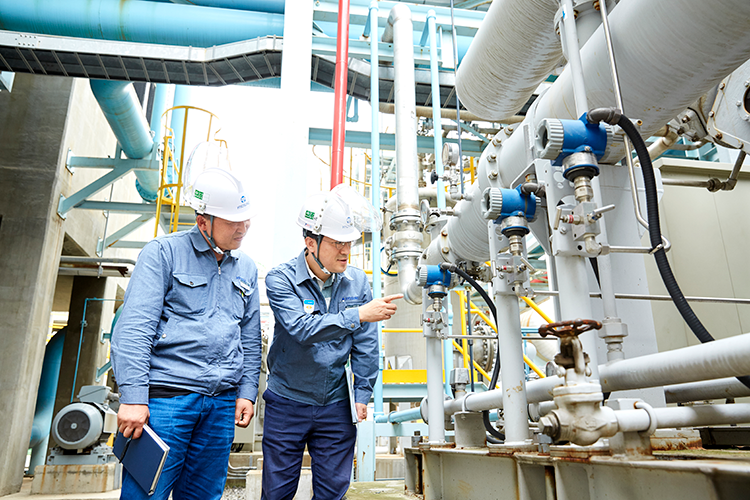 효성화학 용연공장의 프로판 탈수소화 설비는 프로판에서 수소 분자를 제거해 플라스틱의 원료가 되는 프로필렌을 생산합니다. 이 과정에서 발생하는 부생수소를 연료용 액화수소로 활용하는데, 효성은 글로벌 화학 기업 린데그룹과 함께 2022년까지 약 3만㎡, 연산 1만 3,000톤 규모의 액화수소 공장을 울산 용연공장 내에 완공할 예정입니다. 완공 시점에 맞춰 액화수소 충전 인프라도 함께 구축하며 공장에서 생산한 액화수소의 공급을 위해 전국 주요 거점 지역에 120개의 수소 충전소를 짓기로 했습니다.