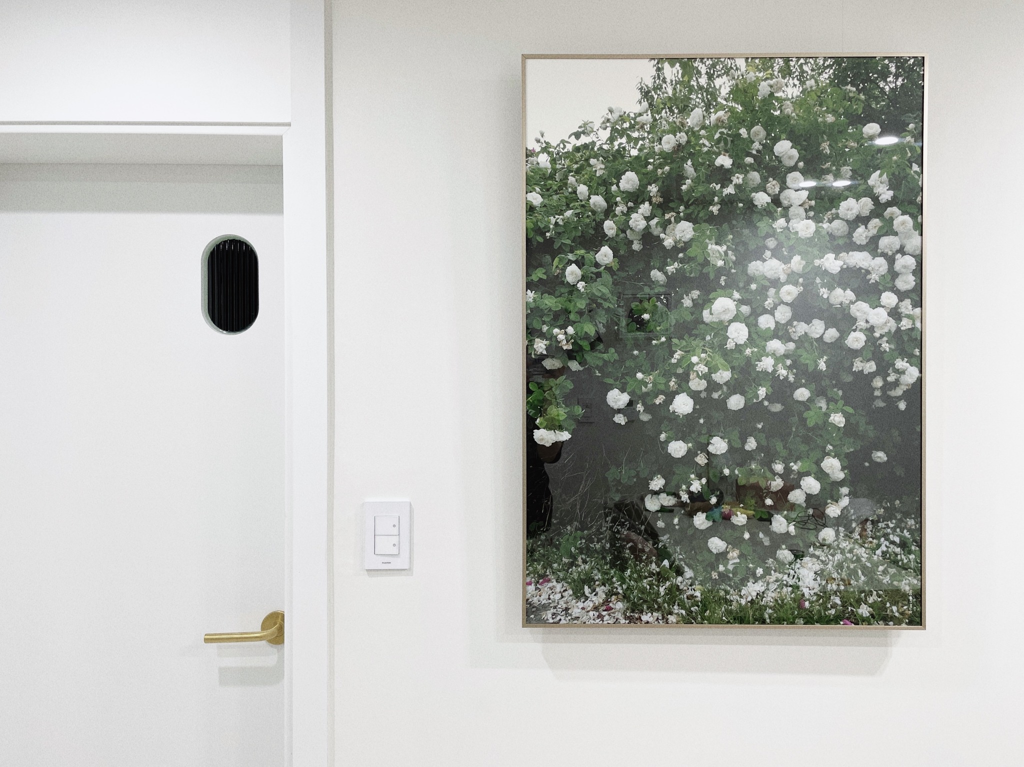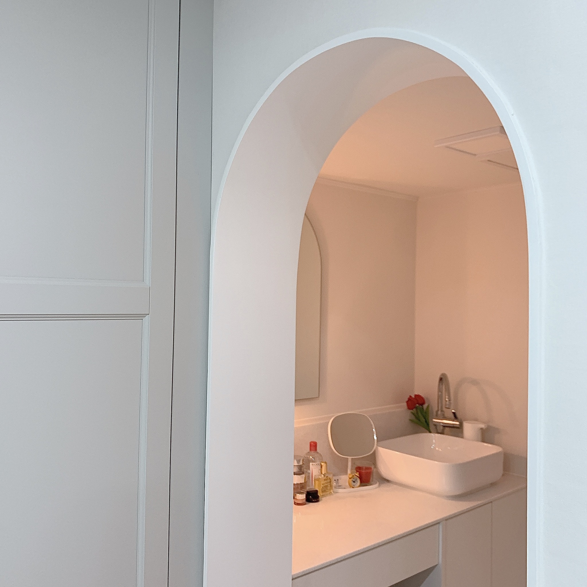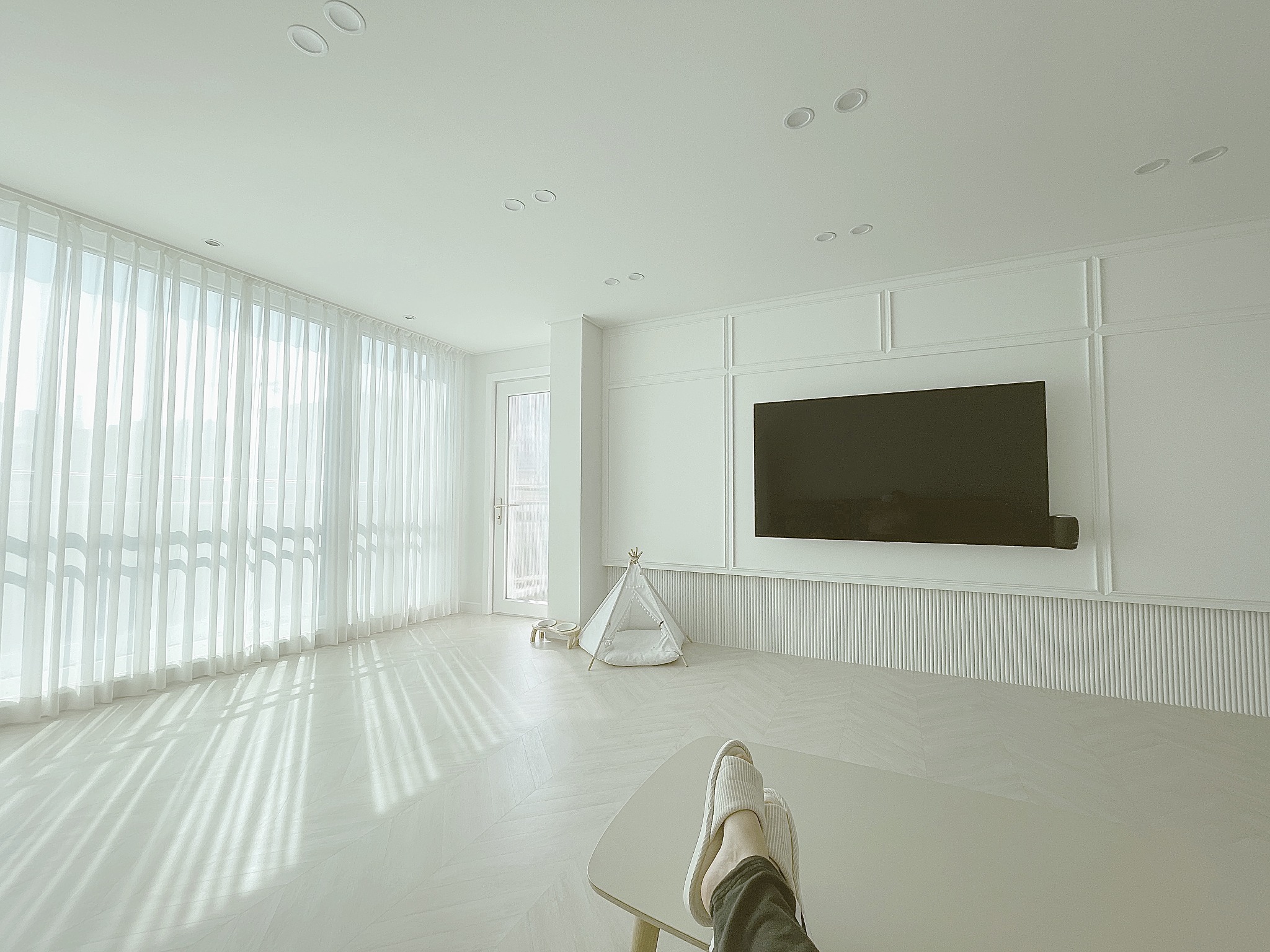 “전체적으로 심플한 상태에서 아트월, 조명, 액자, 패브릭과 같은 포인트를 준 공간을 좋아합니다. 순백의 도화지 같던 집에 따스한 간접조명이나 화사한 액자가 주는 생동감은 반전의 매력을 가져다주죠. 입체적인 아트월로 고급스러움까지 더한 우리 집은 마음이 편안한 집입니다.”