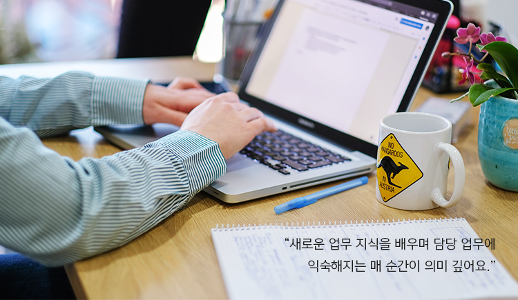 팀 내부의 업무분장을 새로이 하여 온전한 제 담당 업무가 생긴 날이 가장 기억에 남습니다. 입사 후 줄곧, 선배들의 업무를 보조하는 역할만 하다가 3개월 만에 특정 업무의 담당자가 되니 ‘이제 본격적인 시작이구나’ 하는 생각이 들었어요. 물론 아직은 담당한 업무를 완벽히 소화하지 못하고 있지만, 새로운 업무 지식을 배우며 담당 업무에 익숙해지는 매 순간이 의미 깊어요.