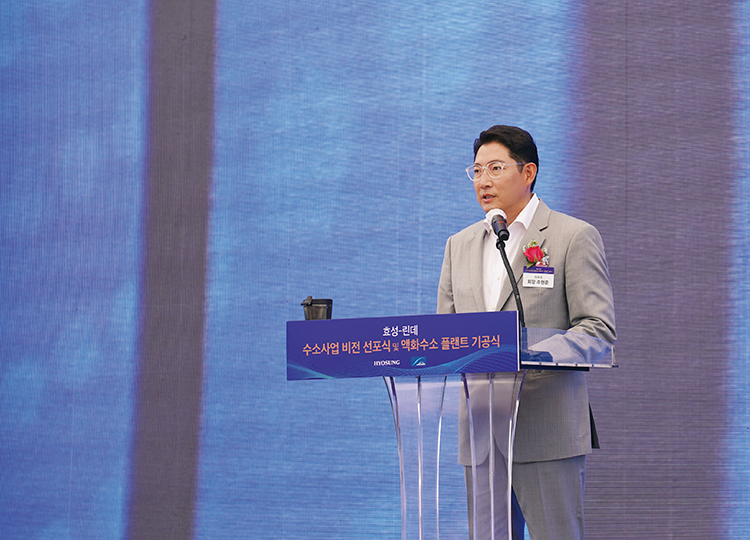 국내 수소 충전 시스템 점유율 1위인 효성중공업과 글로벌 가스 및 화학 전문 기업 린데가 6월 21일, 효성화학의 울산 용연공장 부지에서 수소 사업 비전 선포와 액화수소 플랜트 기공식을 개최했습니다. 조현준 회장은 “수소에너지는 인류의 미래를 바꿀 에너지 혁명의 근간으로 지속적인 투자를 통해 수소에너지로의 빠른 패러다임 전환을 이끌어나가겠다”며 “효성의 역사가 시작된 울산에서 백 년 효성으로 나아갈 새 장을 열게 돼 감회가 새롭다”고 소감을 전했습니다.
