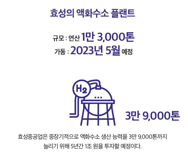 효성과 린데의 판매 합작 법인인 효성하이드로젠㈜은 전국 30여 곳에 대형 액화수소 충전소를 건립합니다.