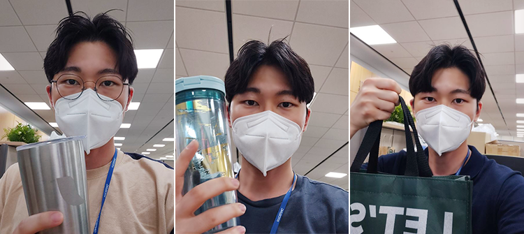 다들 그렇듯이 저도 일회용품을 사용하는 것에 굉장히 익숙합니다. 그래서 가장 간단하게 할 수 있는 ‘카페나 회사에서 일회용 컵 대신 텀블러 사용하기’, ‘마트나 회사에서 비닐봉지 대신 재생 가방 사용하기’에 초점을 맞췄어요. 카페에서 텀블러를 사용하는 것은 꽤 불편하지만, ‘나 하나 잠깐 편해지자고 환경을 망치고 있었구나’라는 생각이 들었어요. 또, 생각보다 텀블러에 음료를 담아가는 사람들이 거의 없어서, 일회용품 사용에 대한 자각을 많이 느끼지 못하고 있는 것 같아 한편으로 아쉬웠습니다. 일회용품을 아예 쓰지 않을 순 없겠지만, 이번 도전을 통해 최대한 줄이고자 다짐하는 계기가 된 것 같아요.