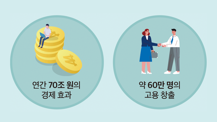 2050년 세계는 수소에너지가 전 세계 에너지 수요의 약 18%를 차지할 것이며, 대한민국은 수소 산업으로 연간 70조 원의 경제 효과와 약 60만 명의 고용 창출 효과를 거둘 것으로 예상합니다.
