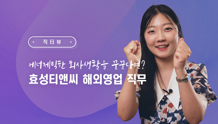 같은 효성인이지만, 하는 일은 너무도 다릅니다. 효성의 다양한 사업회사, 또 다양한 부서와 팀, 그리고 한 팀에서도 다양한 업무가 존재하죠. ‘내가 지원하려는 직무는 대체 어떤 일을 하게 되는 걸까? 합격하려면 어떻게 준비해야 할까?’ 궁금하셨던 취준생 여러분을 위해 준비했습니다. 현직 효성인과의 직무 인터뷰 <직터뷰>는 효성의 다양한 직무를 소개하고, 취준생을 위한 팁을 전합니다.