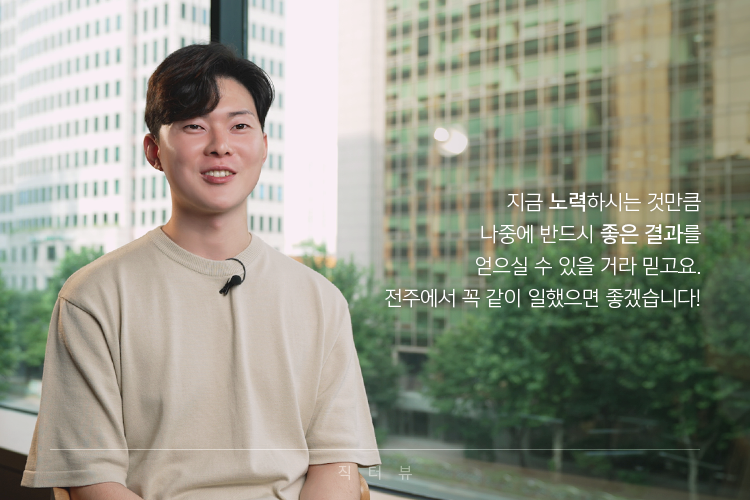효성에 지원하시는 취준생 여러분, 지금 노력하시는 것만큼 나중에 반드시 좋은 결과를 얻으실 수 있을 거라 믿고요. 전주에서 꼭 같이 일했으면 좋겠습니다.