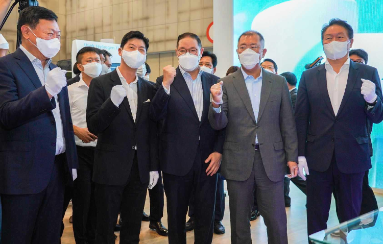 올해 6월, 현대자동차그룹, SK그룹, 포스코그룹, 효성그룹의 총수들이 현대자동차ㆍ기아 기술연구소에 모여서 수소경제 활성화와 탄소중립 실현을 위해 수소기업협의체 설립을 논의하고, 9월에 출범을 공식화할 예정이었어요. 그런데 그사이 롯데, 한화, GS, 현대중공업, 두산, 코오롱그룹이 참여를 결정해 한국 수소산업 생태계의 구심이 될 이른바 ‘K-수소동맹’이 완성되었습니다. 이번 2021 수소모빌리티+쇼에서 ‘H2비즈니스서밋'을 열고 수소기업협의체가 공식 출범하게 됩니다.