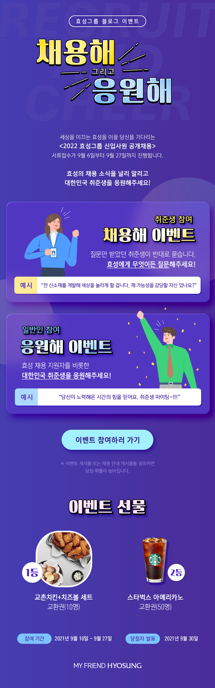 [이벤트] 효성은 지금 <채용해 그리고 응원해> 취준생도 여러분도 모두가 함께하는 EVENT