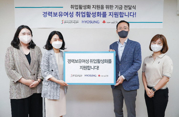 효성그룹이 8월 25일 재취업에 어려움을 겪고 있는 여성들이 경제 활동에 복귀할 수 있도록 종로여성인력개발센터에 후원금을 전달했다. 효성은 2013년부터 종로여성인력개발센터와 함께 여성들이 체계적인 직업 훈련을 통해 성공적으로 사회에 진출할 수 있도록 기회를 제공하고 있다.