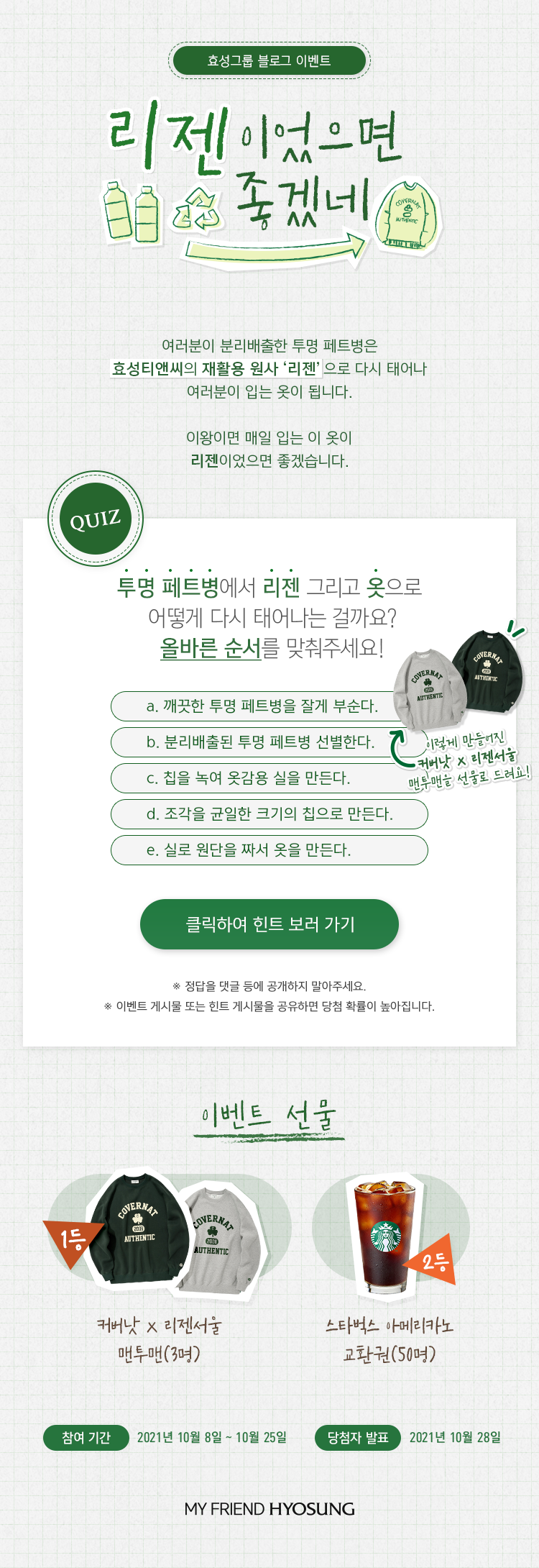 [이벤트] 우리가 매일 입는 이 옷이 페트병을 재활용한 <리젠이었으면 좋겠네> 퀴즈 EVENT