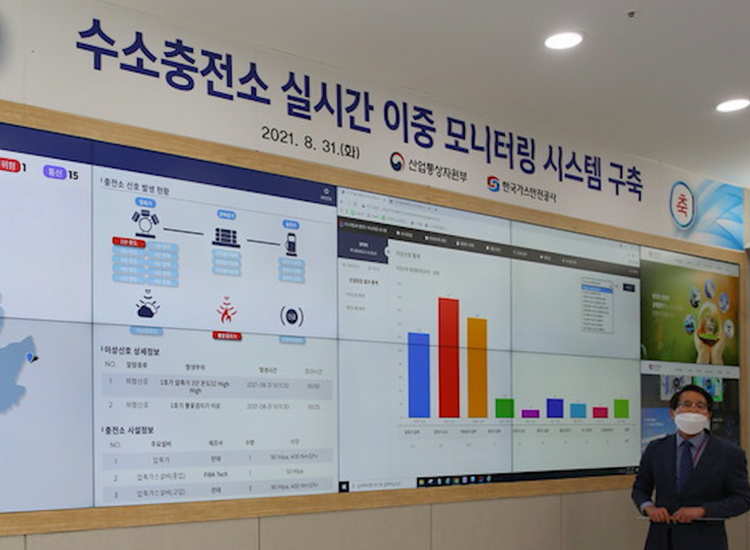 효성중공업이 수소 충전소 운영 상황을 24시간 관리하는 시스템을 구축하고 본격적인 가동에 돌입했다. 이에 앞서 8월 31일에는 ‘수소 충전소 안전 모니터링 시스템 개소식’을 가져 산업통상자원부, 한국가스안전공사, 하이넷이 참석한 바 있다. 새로 도입한 안전 모니터링 프로그램은 수소 충전소 상태를 실시간으로 파악해 가스안전공사 상황실로 전송한다.